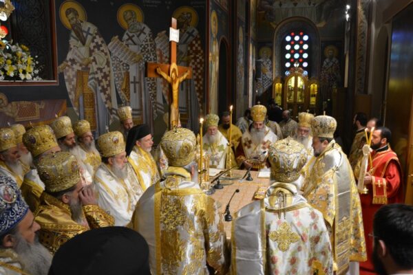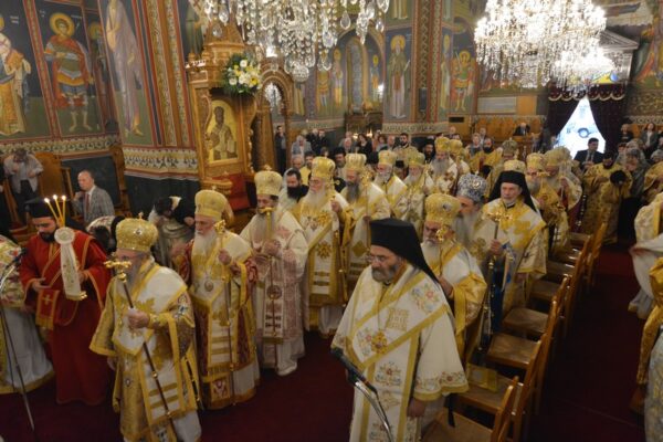 Της Πανηγυρικής Πολυαρχιερατικής Θείας Λειτουργίας προεξήρχε ο Σεβ. Μητροπολίτης Μεσσηνίας κ. Χρυσόστομος, συλλειτουργούντων των Μητροπολιτών Καστορίας κ. Σεραφείμ, Δημητριάδος κ. Ιγνατίου, Πειραιώς κ. Σεραφείμ, Κοζάνης κ. Παύλου, Κορίνθου κ. Διονυσίου, Άρτης κ. Καλλινίκου, Ιλίου κ. Αθηναγόρα, Κηφισίας κ. Κυρίλλου, Κίτρους κ. Γεωργίου, Σουηδίας κ. Κλεόπα, Σταγών κ. Θεοκλήτου, Περιστερίου κ. Κλήμεντος, Φθιώτιδος κ. Συμεών, Καλαβρύτων κ. Ιερωνύμου, Λήμνου κ. Ιεροθέου και των Θεοφιλ. Επισκόπων Αβύδου κ. Κυρίλλου και Ανδρούσης κ. Κωνστάντιου. Συμπροσευχόμενοι παρέστησαν οι Σεβ. Μητροπολίτες Φωκίδος κ. Θεόκτιστος, Μεγάρων κ. Κωνσταντίνος και ο Θεοφιλ. Επίσκοπος Αμορίου κ. Νικηφόρος.