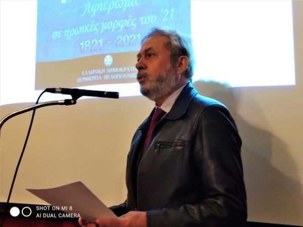 «Η επέτειος των 200 χρόνων, από την Ελληνική Επανάσταση του 1821, έφερε τότε και φέρνει πάντοτε στη σκέψη μας, πρωτίστως τους πρωταγωνιστές εκείνου του τιτάνιου αγώνα· τους ρακένδυτους Αγωνιστές, επώνυμους και ανώνυμους, οι οποίοι διεξήγαγαν τον Απελευθερωτικό Αγώνα, μέσα σε τραγικές συνθήκες, όπως η απειρία πολέμου, η έλλειψη μέσων και εφοδίων, οι άθλιες συνθήκες υγιεινής διαβίωσης, ένδυσης και διατροφής, οι σοβαρές επιδημίες, ο καταστροφικός εμφύλιος πόλεμος και τόσα άλλα δεινά, γνωστά από την ιστορία.