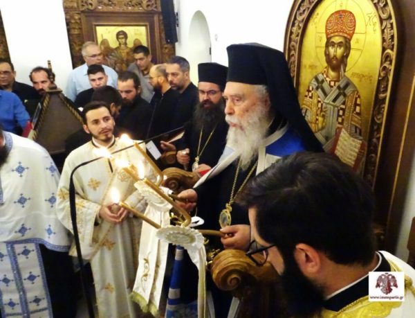 Αμέσως μετά, εντός του Ιερού Βήματος του Ναού, έλαβε χώρα η τελετή καταθέσεως των ιερών λειψάνων, προεξάρχοντος του σεπτού Ποιμενάρχη, ενώ ακολούθησε ο Αρχιερατικός Εσπερινός.