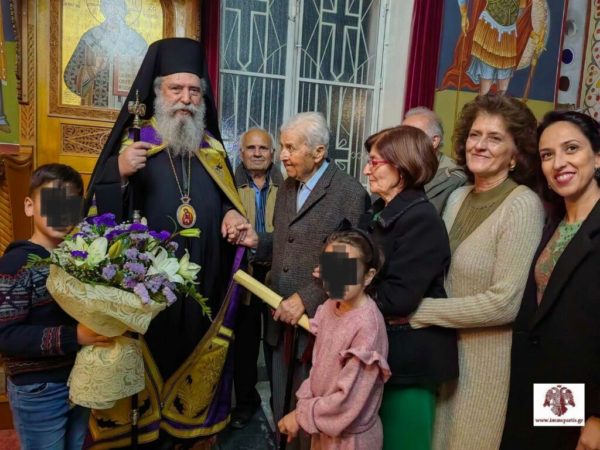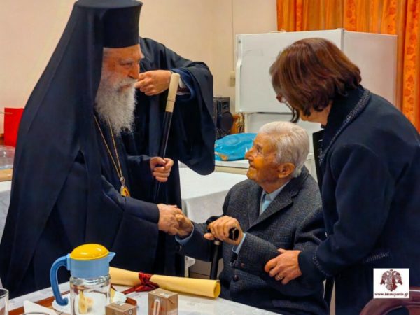 Ακολούθως, ο Σεβασμιώτατος απένειμε έπαινο στον αιωνόβιο κάτοικο του χωριού, κ. Απόστολο Καργάκο, για την εξηκονταετή θητεία του ως Εκκλησιαστικός Σύμβουλος του Ενοριακού Ναού, τον ορθόδοξο ζήλο, τον έντιμο βίο και την θαυμαστή δραστηριότητά του σε εκκλησιαστικά έργα, ανακηρύσσοντάς τον παράλληλα ισόβιο επίτιμο Εκκλησιαστικό Σύμβουλο.