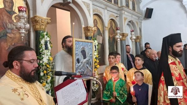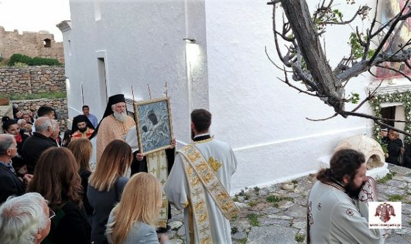 Η πανήγυρη επισφραγίστηκε με τη λιτάνευση της Ιερής εικόνας στα γραφικά καλντερίμια της καστροπολιτείας.
