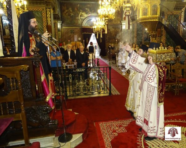 Ειδικότερα, το απόγευμα του Σαββάτου τελέσθηκε ο Πανηγυρικός Δισαρχιερατικός Εσπερινός χοροστατούντος του Βοηθού Επισκόπου της Ιεράς Μητροπόλεώς Μονεμβασίας και Σπάρτης, Θεοφιλεστάτου Επισκόπου Λακεδαιμονίας κ. Θεοφίλου και με τη συμμετοχή του Σεβασμιωτάτου Μητροπολίτη Μονεμβασίας και Σπάρτης κ. Ευσταθίου και πλειάδας κληρικών απ’ όλη την μητροπολιτική περιφέρεια.