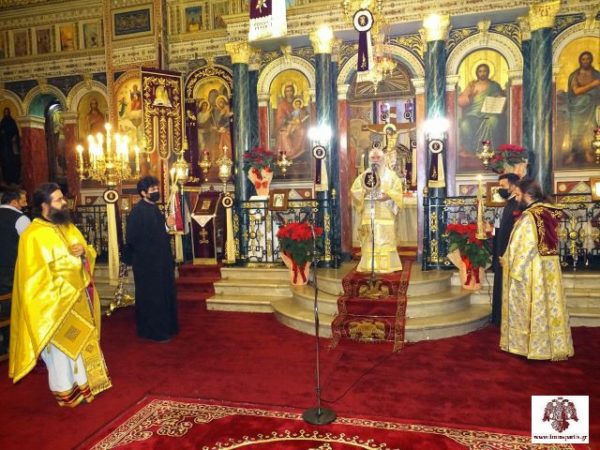 Επισφραγίζοντας την λατρευτική σύναξη, ο Σεβασμιώτατος αναφέρθηκε στην μάστιγα της πανδημίας τονίζοντας ότι θα πρέπει να υπάρχει ο καλώς εννοούμενος φόβος, που θα λειτουργήσει ως κινητήριος μοχλός προστασίας, αλλά όχι φοβία. Επίσης ευχήθηκε στο εκκλησίασμα, αλλά και στους ακροατές του Ραδιοφωνικού Σταθμού της Ιεράς Μητροπόλεώς, που μετέδωσε απευθείας την ιερή ακολουθία, να έχουν την απλότητα και την ταπεινότητα των ποιμένων, την χαρά των αγγέλων, τον πόθο και την αναζήτηση των τριών μάγων. Τέλος, τόνισε ότι πιο σημαντικό από την ευχή για χρόνια πολλά, είναι να αποκτήσουν τα χρόνια μας νόημα μέσω της εν Χριστώ ζωής.