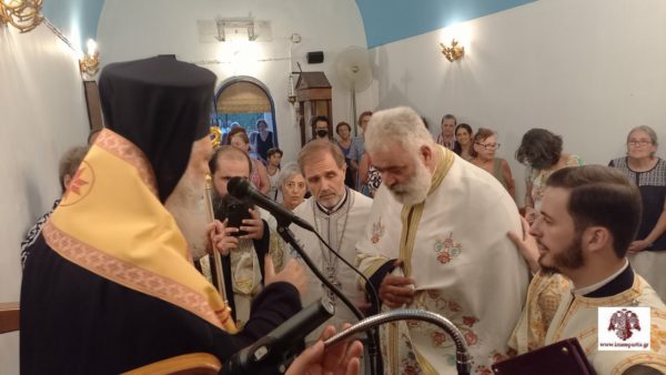 Πριν την ολοκλήρωση της εσπερινής πανηγυρικής λατρευτικής σύναξης, ο Σεβασμιώτατος χειροθέτησε Πνευματικό τον π. Κωνσταντίνο Μέντη, εφημέριο Δαιμονιάς, που εξυπηρετεί και τον Αρχάγγελο, μιλώντας με επαινετικά λόγια για την πίστη, την σεμνότητα, την εργατικότητα και την γένει πολύτιμη προσφορά του στην τοπική Εκκλησία.