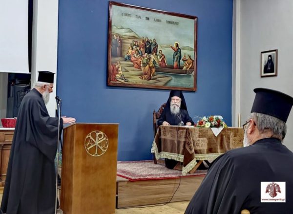 Ακολούθως, στο Ενοριακό Πνευματικό Κέντρο, πραγματοποιήθηκε, υπό τον Σεβασμιώτατο Μητροπολίτη Μονεμβασίας και Σπάρτης, σύναξη των πρεσβυτερών της ευρύτερης περιοχής παρουσία και των κληρικών. Αρχικά, καλωσόρισε τους παρευρισκόμενους ο εφημέριος Μολάων και Αρχιμανδρίτης του Οικουμενικού Θρόνου, Πανοσιολογιώτατος π. Γεράσιμος Πετρολέκας, ο οποίος ευχαρίστησε τον Σεβασμιώτατο αφενός για την τιμητική παρουσία του, αφετέρου για την εξαιρετική πρωτοβουλία του επ’ ωφελεία των πρεσβυτερών της περιοχής, που καλούνται να διαδραματίσουν έναν σημαντικό ρόλο στις τοπικές κοινωνίες.