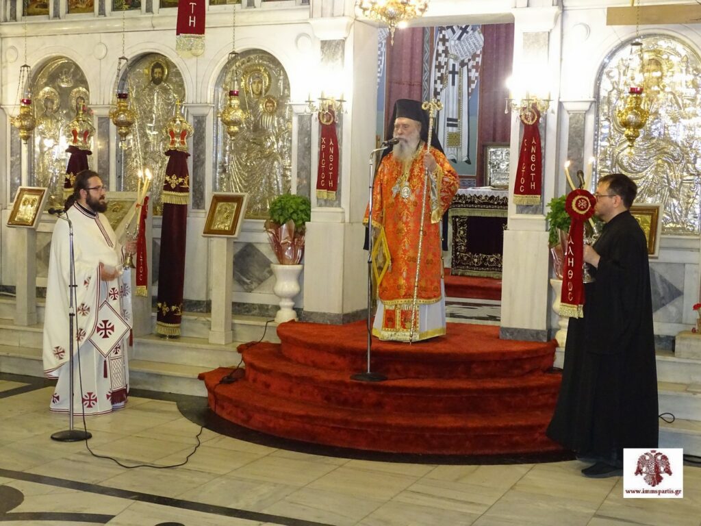 Την Απόδοση της εορτής του Πάσχα τίμησε την Τετάρτη 28 Μαϊου 2025 η Εκκλησία μας. Στη Σπάρτη το βράδυ της Τρίτης, στον Ι.Ν. Οσίου Νίκωνος, τελέσθηκε η καθιερωμένη Ιερά Αγρυπνία, προεξάρχοντος του Σεβασμιωτάτου Μητροπολίτη κ. Ευσταθίου, η οποία περιελάμβανε τον Εσπερινό, τον Όρθρο και την Αναστάσιμη Θεία Λειτουργία.