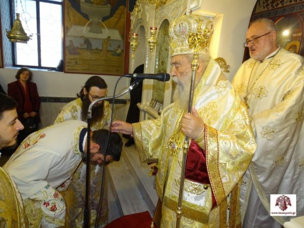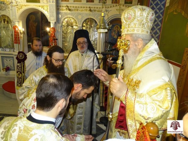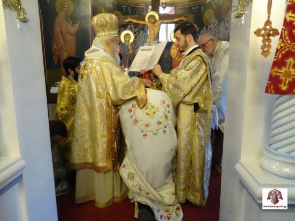 Κατά τη διάρκεια της Θείας Λειτουργίας τελέσθηκε η εις Διάκονον χειροτονία ενός ευσεβούς έγγαμου νέου και πατέρα ενός τέκνου, του Ευάγγελου Πατάνη. Ο σεπτός Ποιμενάρχης απευθυνόμενος στο νέο διάκονο μίλησε για την ιερωσύνη και για το μεγάλο βάρος που επωμίζεται στους ώμους του, τονίζοντας ότι για να φέρει εις πέρας το λειτούργημά του θα πρέπει να χαρακτηρίζεται από βαθιά πίστη, θυσιαστική αγάπη για τον συνάνθρωπο και ταπείνωση.