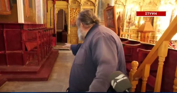Στη Στύψη της Λέσβου συγκλονίζει ο ιερέας του ναού του χωριού που τιμάται στο όνομα της Αγίας Τριάδας καθώς περιγράφει λεπτό προς λεπτό τις στιγμές που έζησε μέσα στο ναό όταν πήγε το πρωί του Σαββάτου για να δει την κατάσταση στο χώρο.