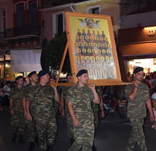 Το Σάββατο το βράδυ τελέστηκε μέγας αρχιερατικός εσπερινός στον ιερό ναό Αγίου Θεράποντα Μυτιλήνης και στη συνέχεια έγινε ιερή λιτάνευση με συμμετοχή όλου του ιερού κλήρου της Λέσβου και τμήματα των στρατιωτικών δυνάμεων στο κέντρο της πόλης, ενώ κατέληξε στη Μητρόπολη της Μυτιλήνης. Δείτε τις χαρακτηριστικές φωτογραφίες.