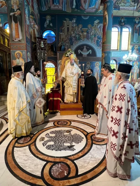 Προ της Απολύσεως ο Σεβασμιώτατος αναφέρθηκε στο Ευαγγελικό Ανάγνωσμα της ημέρας (Ματθ. 21, 33-42), καθώς και στο βίο του θαυματουργού Αγίου Νεκταρίου, ο οποίος με την ταπεινοφροσύνη του, την υπομονή και την υπακοή του στην Εκκλησία αποτέλεσε ένα πραγματικό δώρο του Θεού στον κόσμο, σφραγίζοντας την Εκκλησία του Χριστού κατά τον περασμένο αιώνα.