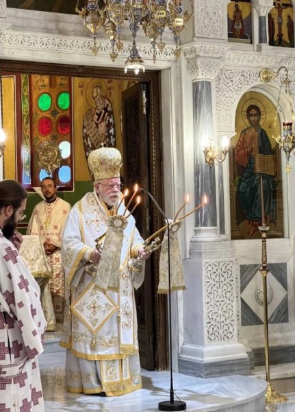 Την κυριώνυμο ημέρα της εορτής, Δευτέρα 11 Ιουλίου, ο Σεβασμιώτατος Μητροπολίτης Ανέων κ. Μακάριος χοροστάτησε στην ακολουθία του Όρθρου και στη συνέχεια τέλεσε την Πανηγυρική Θεία Λειτουργία, πλαισιωμένος από κληρικούς της Ιεράς Μητροπόλεως.