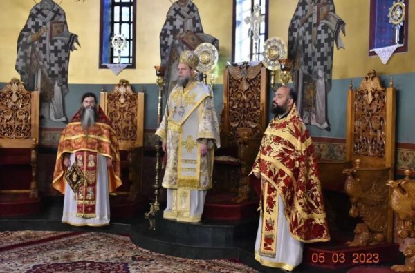 Ακολούθως, συμφώνως με την τάξη της Αγίας μας Εκκλησίας πραγματοποιήθηκε η λιτάνευση των ιερών Εικόνων και αναγνώσθηκε σε τρεις στάσεις το Σύμβολο της Πίστεως εντός του Ιερού Ναού εις ανάμνηση της αναστήλωσης των ιερών Εικόνων, ενώ ο Σεβασμιώτατος ανέγνωσε το Συνοδικό της Ορθοδοξίας.