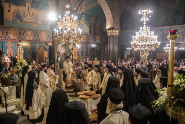 Με τη δέουσα λαμπρότητα τελέσθηκε το Σάββατο 5 Οκτωβρίου 2019 ο Μέγας Πανηγυρικός Πολυαρχιερατικός Εσπερινός, χοροστατούντος του Σεβασμιωτάτου Μητροπολίτου Μάνης κ. Χρυσοστόμου και συγχοροστατούντων των Σεβασμιωτάτων Μητροπολιτών Σάμου, Ικαρίας και Κορσεών κ. Ευσεβίου και του οικείου Ποιμενάρχου Νέας Ιωνίας και Φιλαδελφείας κ. Γαβριήλ και τη συμμετοχή πολλών κληρικών.