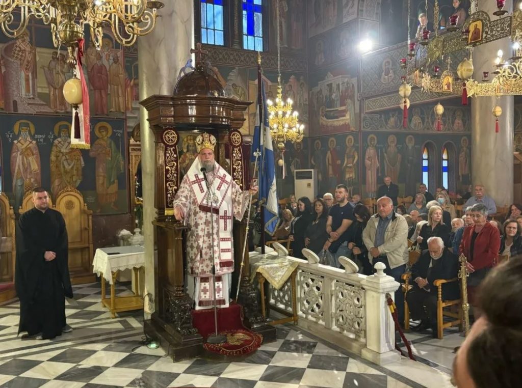Στον θείο λόγο του ο Σεβασμιώτατος αναφέρθηκε στον θαυμαστό βίο και στο μαρτυρικό φρόνημα του πλέον λαοφιλή Αγίου Γεωργίου, ο οποίος, μιμούμενος το πάθος του Αναστάντος Χριστού, αποτελεί φωτεινό πρότυπο πίστεως, δόξα των Μαρτύρων και καύχημα των Αγίων της Εκκλησίας μας.