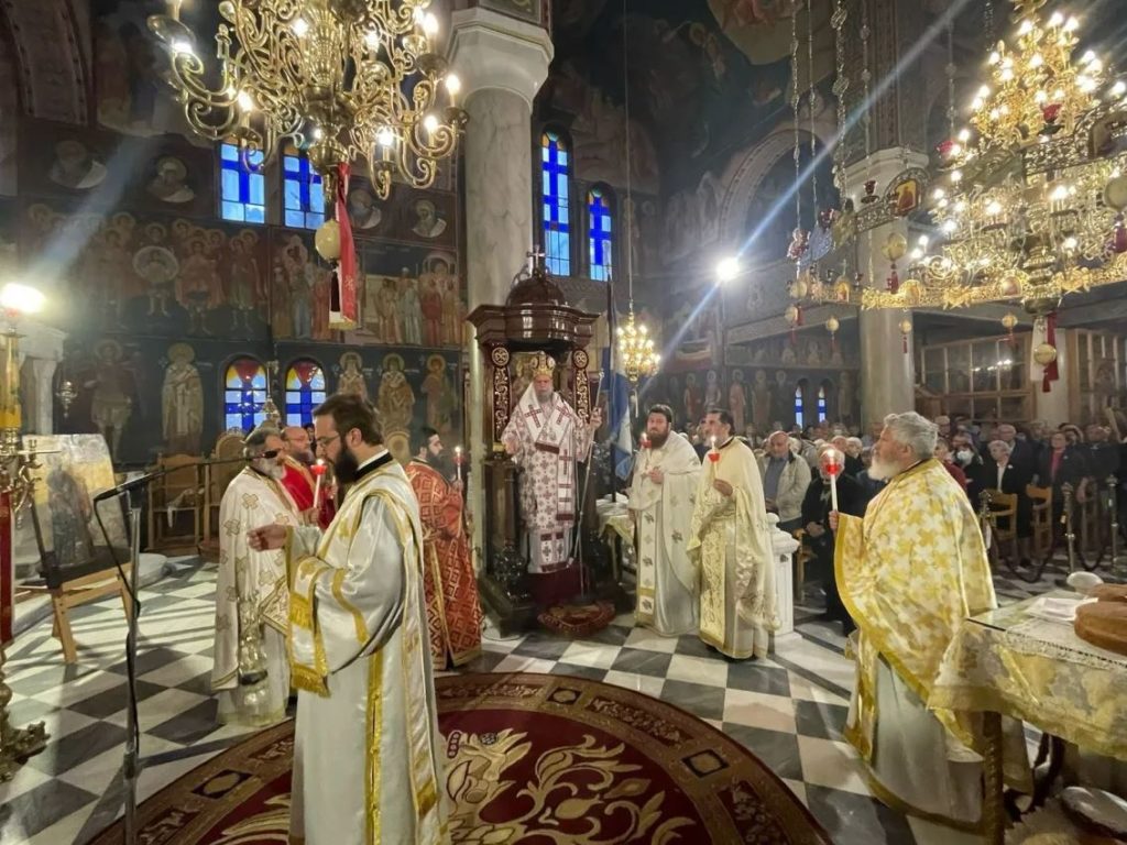 Στον Πανηγυρικό Εσπερινό χοροστάτησε ο Σεβασμιώτατος Μητροπολίτης Νέας Ιωνίας, Φιλαδελφείας, Ηρακλείου και Χαλκηδόνος κ. Γαβριήλ, πλαισιωμένος από κληρικούς της Ιεράς Μητροπόλεως.