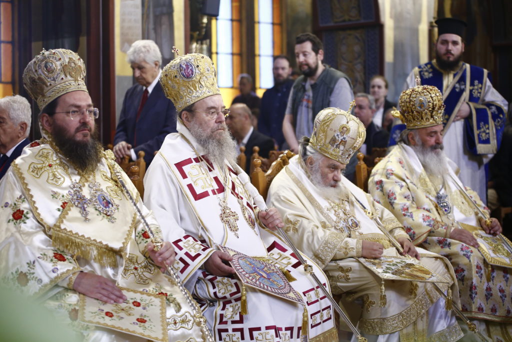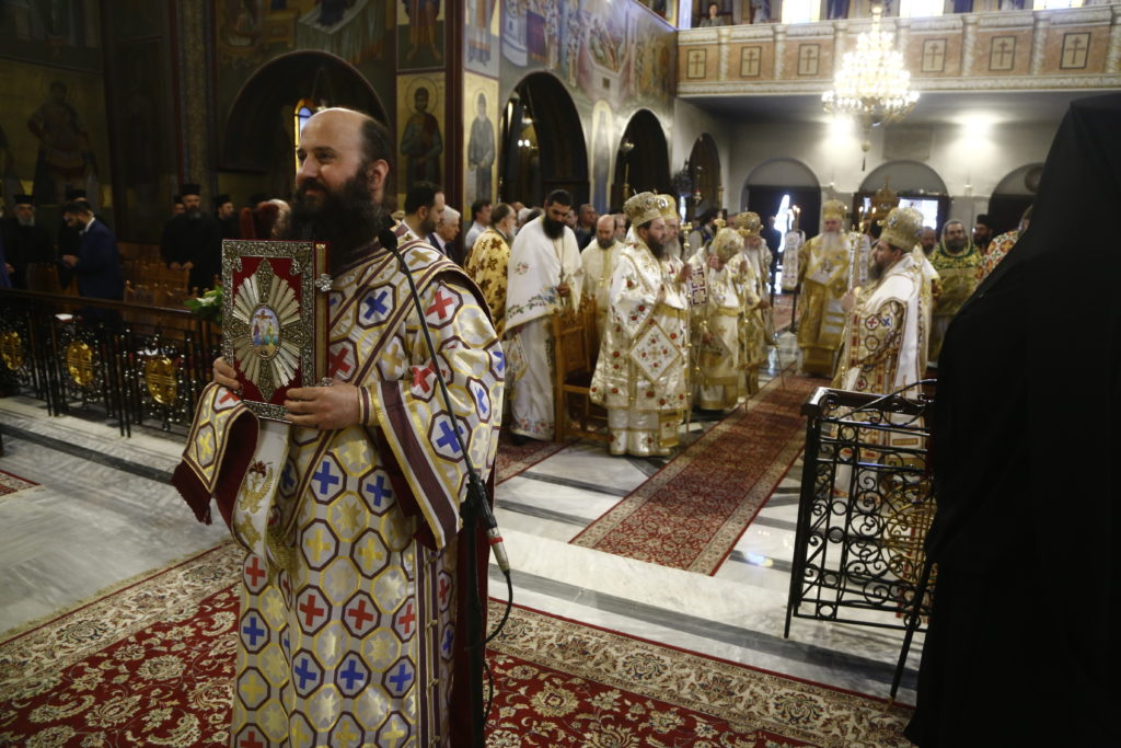 Συμπροσευχόμενοι στο Ιερό βρέθηκαν οι Μητροπολίτες, Βρυούλων κ.Παντελεήμων, Δημητριάδος και Αλμυρού κ.Ιγνάτιος, Αρκαλοχωρίου κ.Ανδρέας, Ειρηνουπόλεως κ.Δημήτριος, Σερβίων και Κοζάνης κ.Παύλος, Νεαπόλεως και Σταυρουπόλεως κ.Βαρνάβας, Θηβών Γεώργιος, Ν. Ιωνίας και Φιλαδελφείας κ. Γαβριήλ, Λαρίσσης κ.Ιερώνυμος , ο Ηγούμενος της Ι.Μ. Βλατάδων Επίσκοπος Αμορίου κ.Νικηφόρος , ο Ηγούμενος της Ι.Μ. Εσφιγμένου αρχιμ. Βαρθολομαίος Νανάκος.