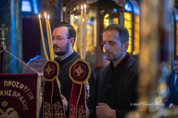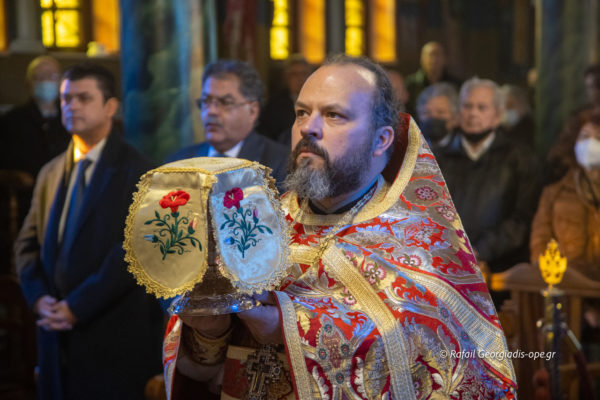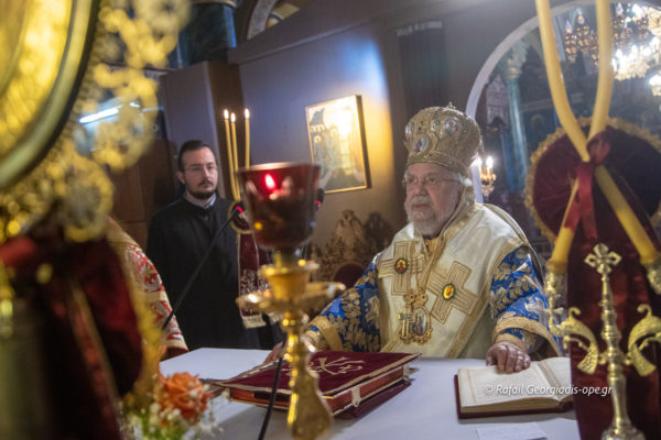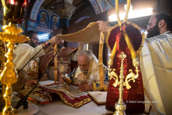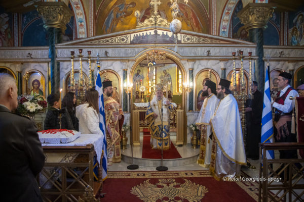 Το μυστήριο της Θείας ευχαριστίας τέλεσε ο Μητροπολίτης Βρυούλων κ. Παντελεήμων. Τον πλαισίωσαν ο πρωτ. Ιωάννης Καραγιάννης (αντισυνταγματάρχης), Διευθυντής θρησκευτικής υπηρεσίας του Γ´ Σώματος Στρατού, ο αρχιμ. Καλλίνικος Παπαδόπουλος, προϊστάμενος του ναού και ο εφημέριος πρωτ. Παντελεήμων Καράτζαλης.