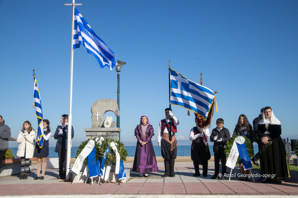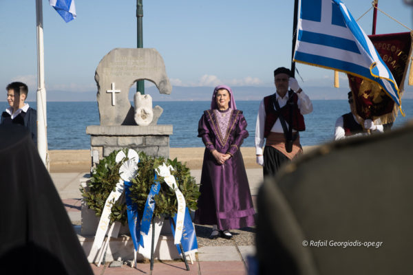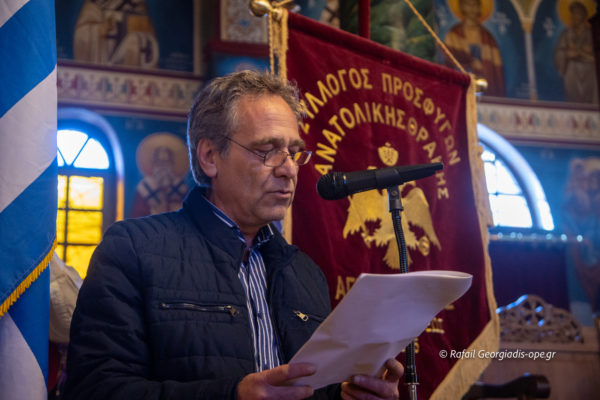 Τον Πανηγυρικό της ημέρας ανέγνωσε η πρόεδρος του Συλλόγου Προσφύγων Ανατολικής Θράκης κα Νίκη Χατζηπαρτάλη. Άκρως συγκινητική ήταν η στιγμή που αναγνώστηκε το ποίημα ενός από τους διασωθέντες του Σχολείου, του Θεόδωρου Νικολαΐδη.