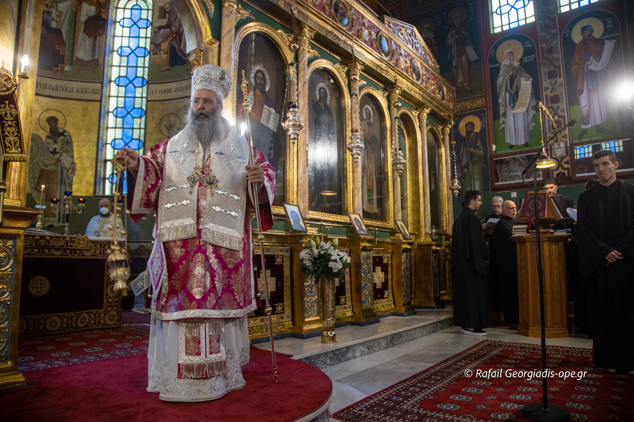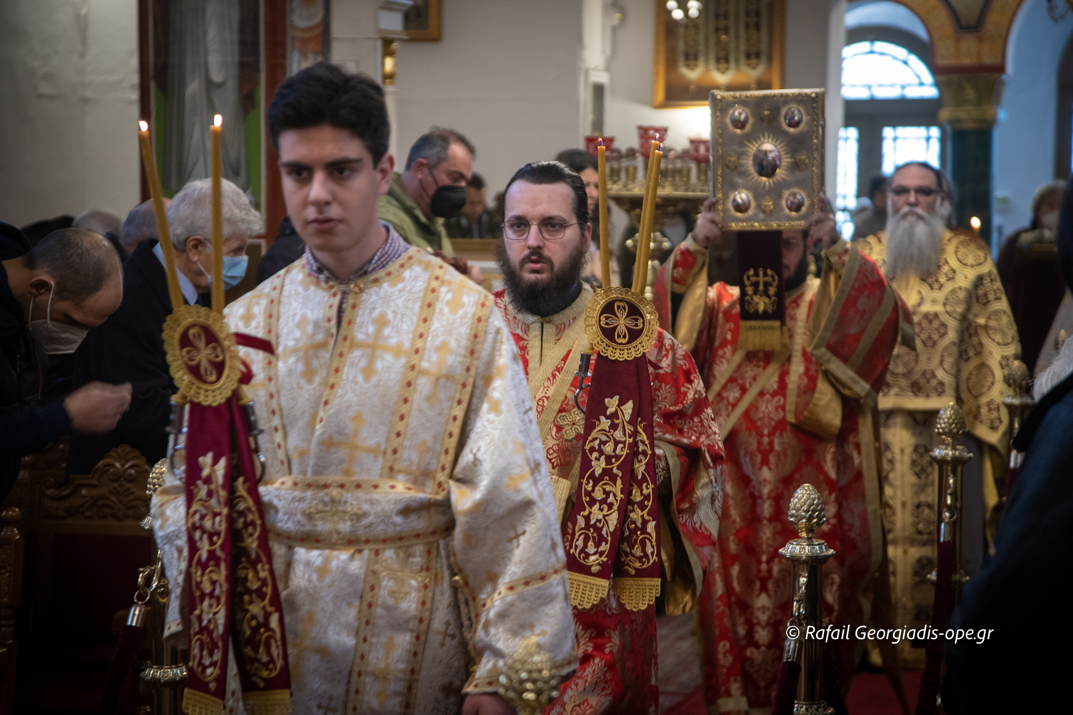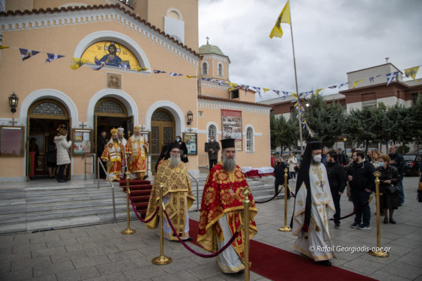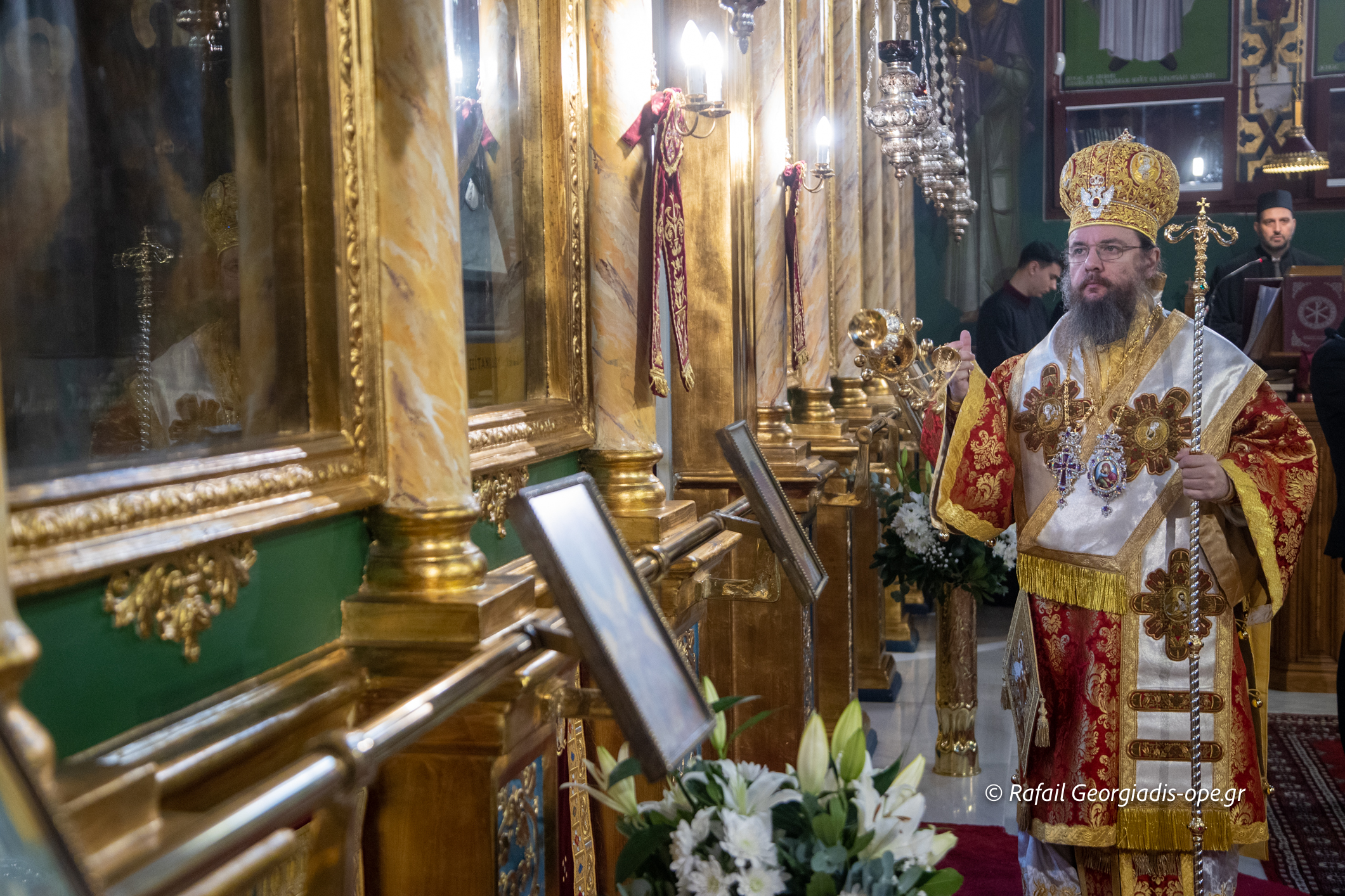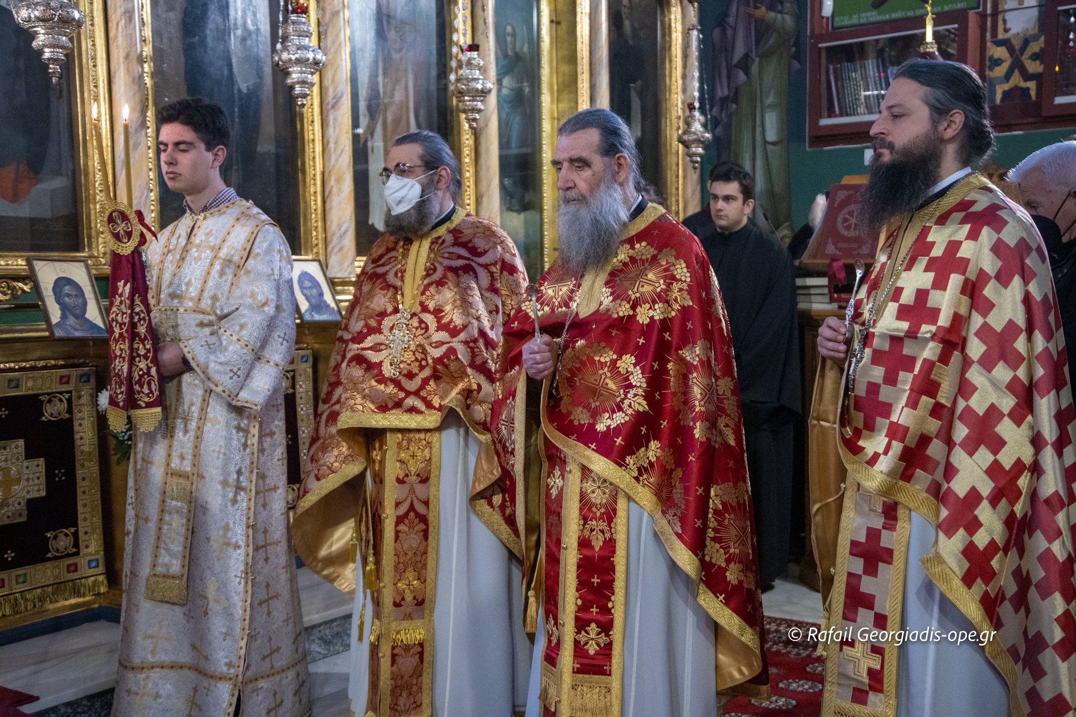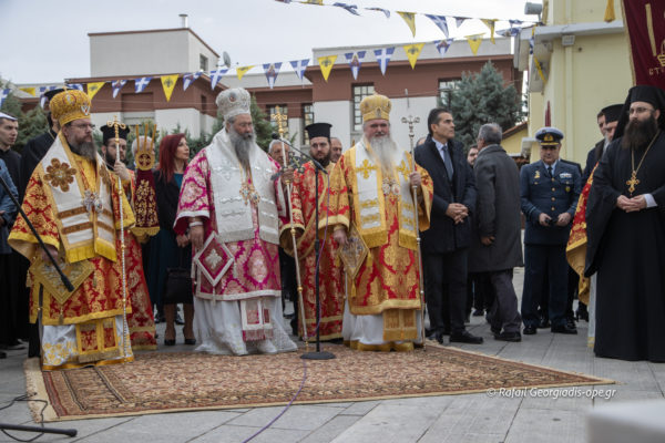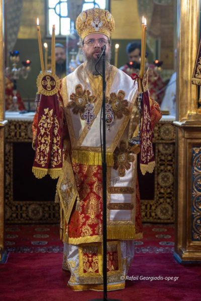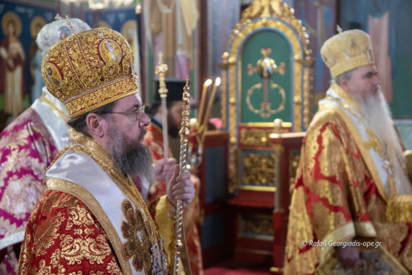 Προεξήρχε ο Μητροπολίτης Κίτρους, Κατερίνης και Πλαταμώνος κ.Γεώργιος τον οποίο πλαισίωσαν ο Μητροπολίτης Αιτωλίας και Ακαρνανίας κ.Δαμασκηνός και ο οικείος ποιμενάρχης Μητροπολίτης Νέας Κρήνης και Καλαμαριάς κ. Ιουστίνος. Στο ιερό συμπροσευχόμενος ήταν ο Μητροπολίτης Σαράντα Εκκλησιών από το Οικουμενικό Πατριαρχείο κ.Ανδρεάς.