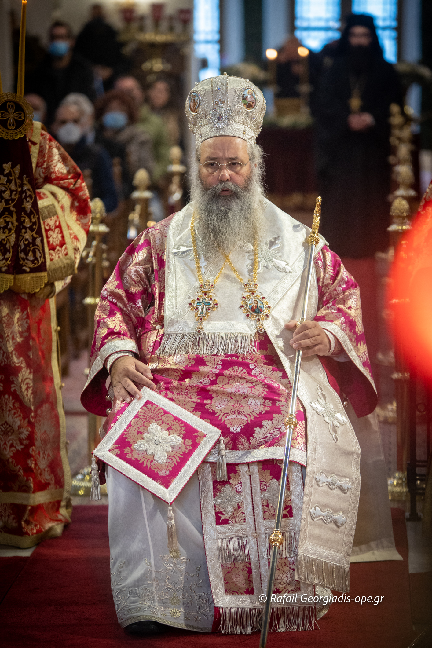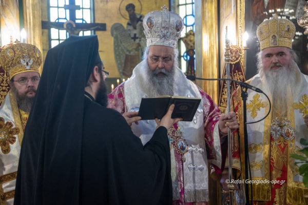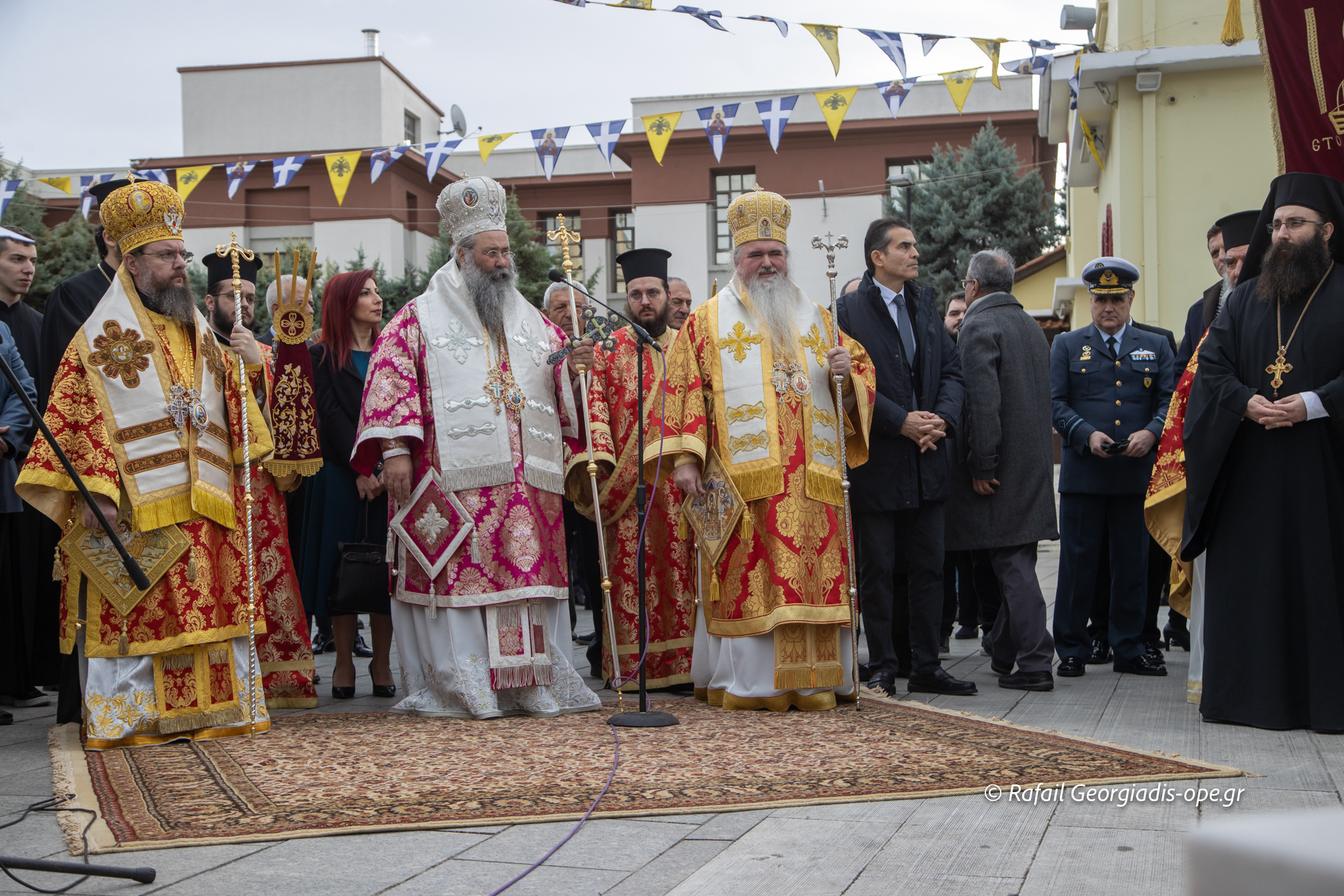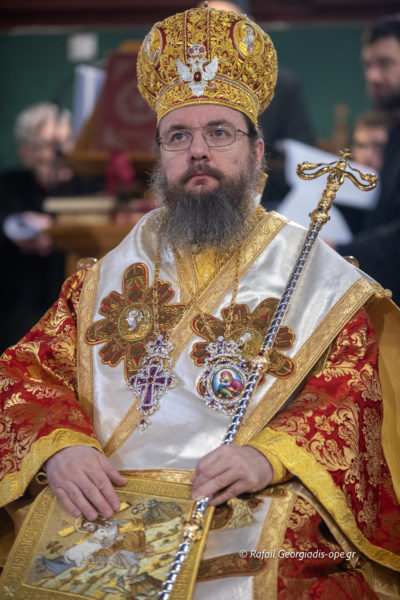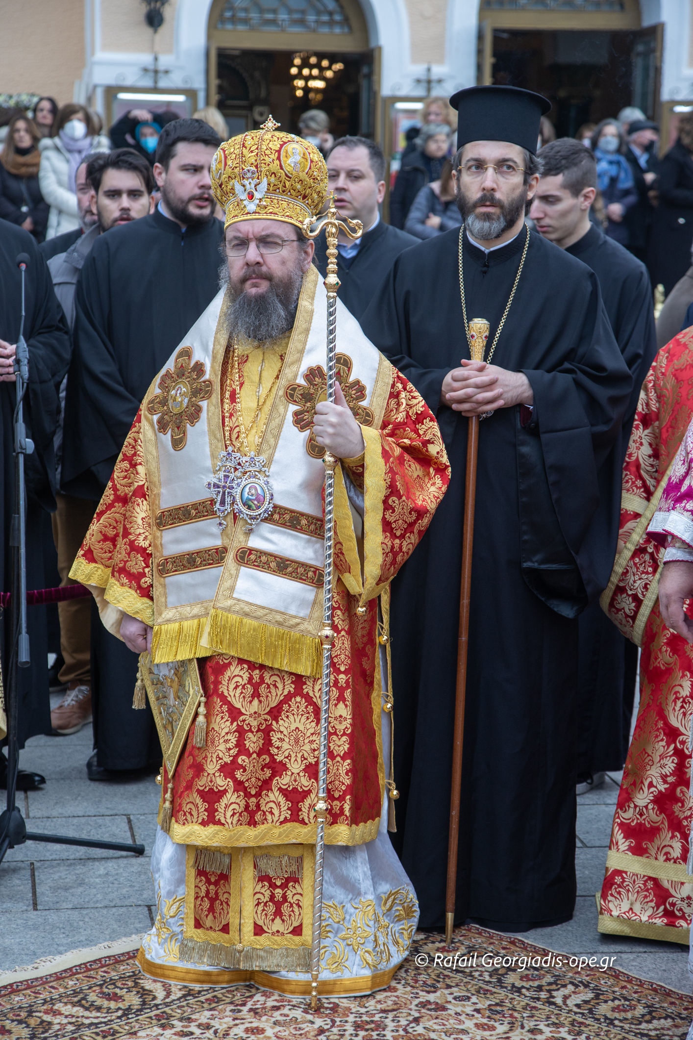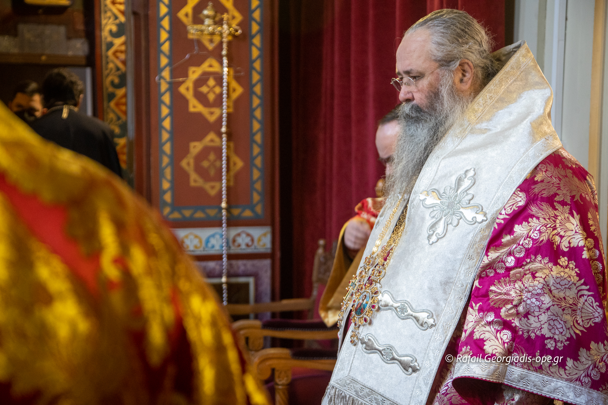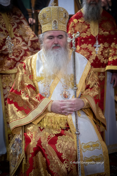 Προεξήρχε ο Μητροπολίτης Κίτρους, Κατερίνης και Πλαταμώνος κ.Γεώργιος τον οποίο πλαισίωσαν ο Μητροπολίτης Αιτωλίας και Ακαρνανίας κ.Δαμασκηνός και ο οικείος ποιμενάρχης Μητροπολίτης Νέας Κρήνης και Καλαμαριάς κ. Ιουστίνος. Στο ιερό συμπροσευχόμενος ήταν ο Μητροπολίτης Σαράντα Εκκλησιών από το Οικουμενικό Πατριαρχείο κ.Ανδρεάς.