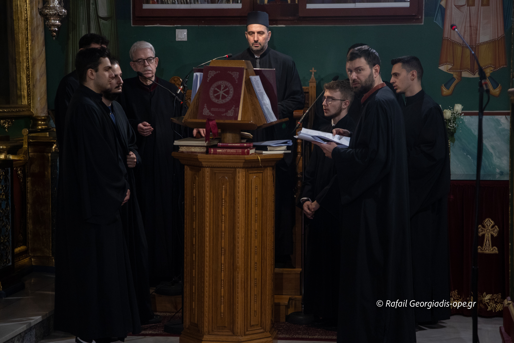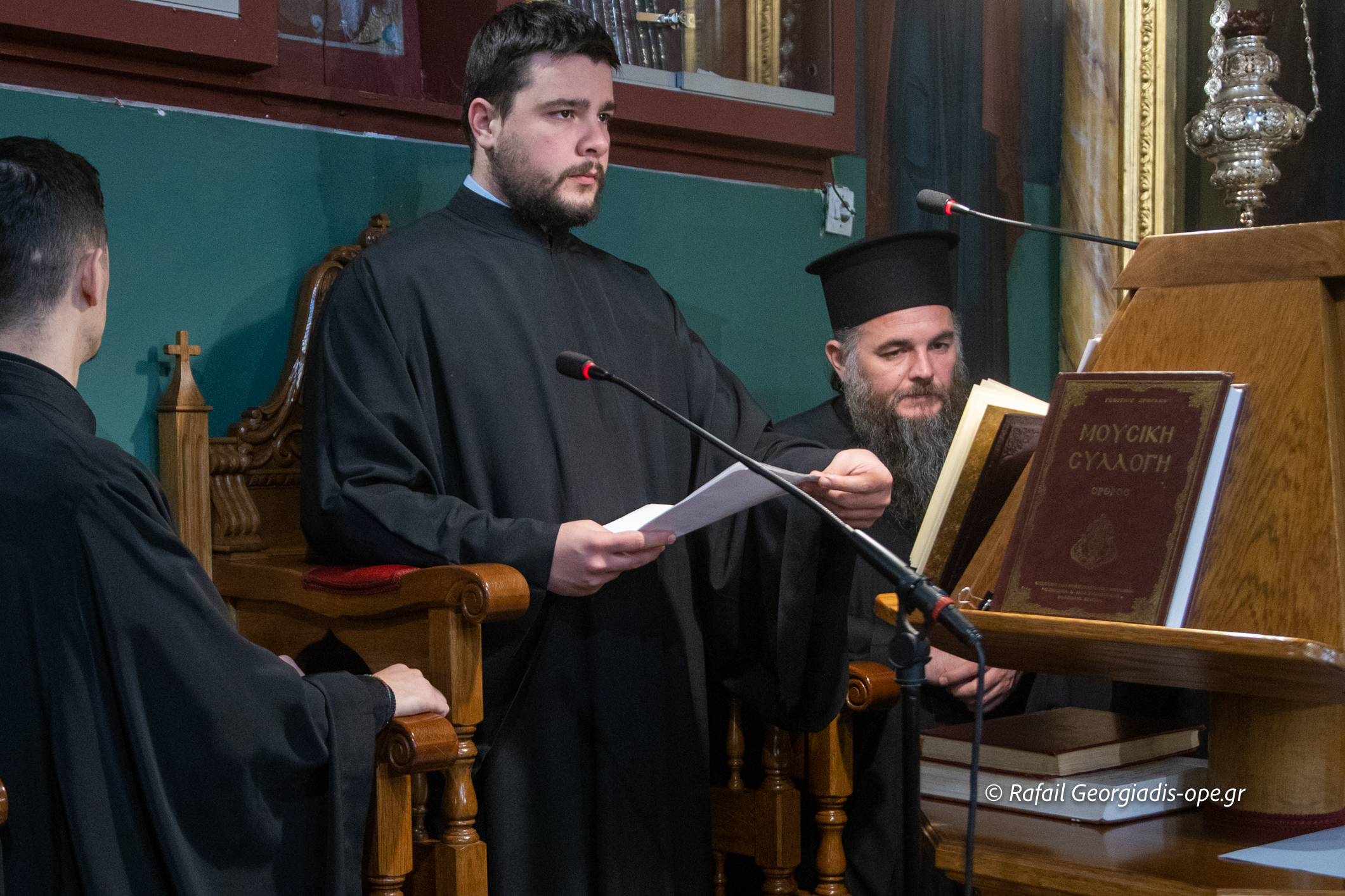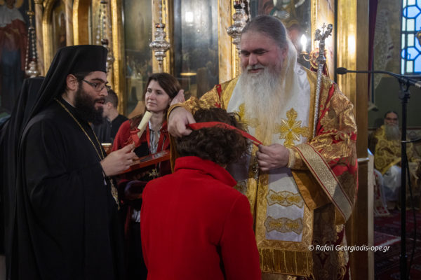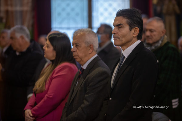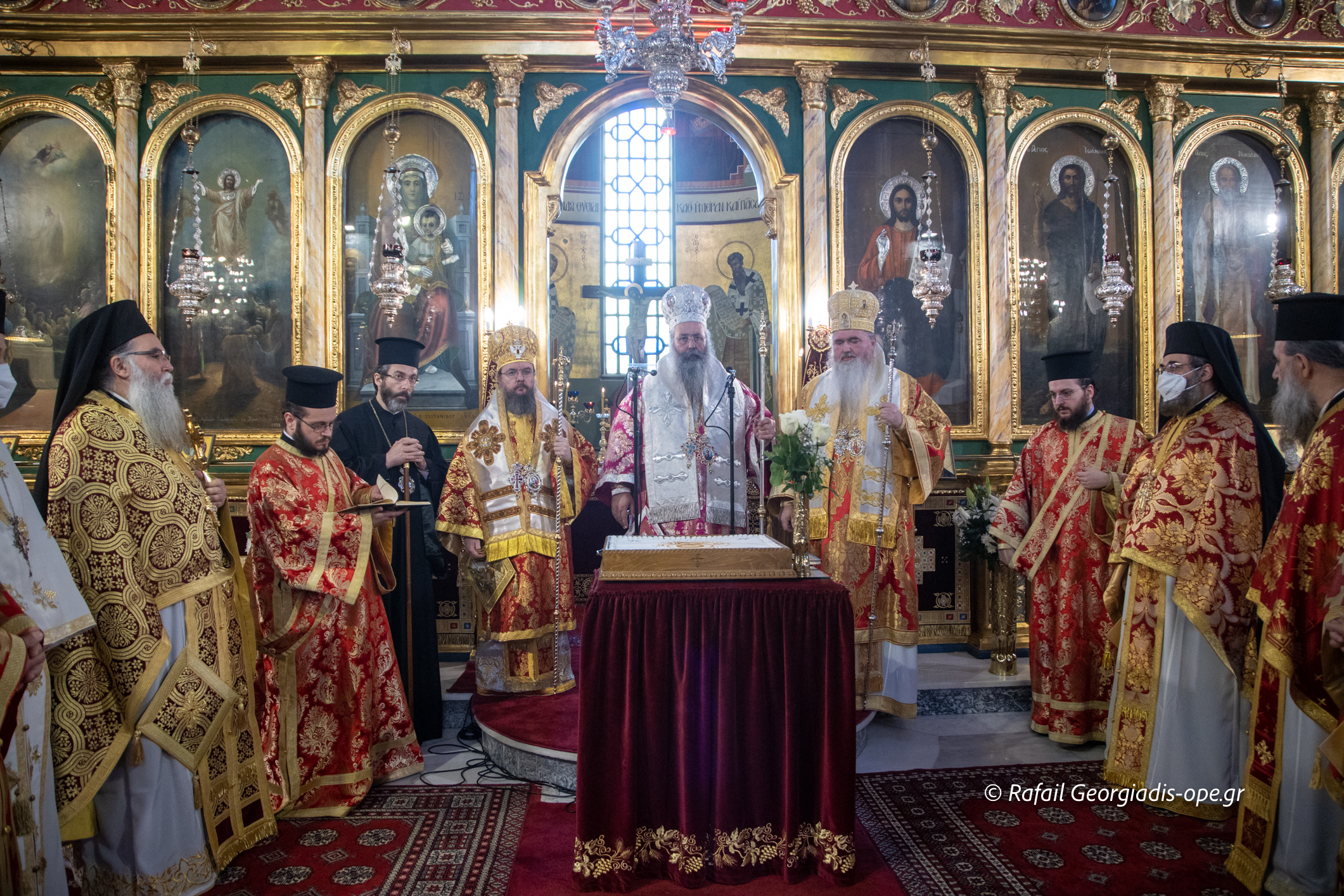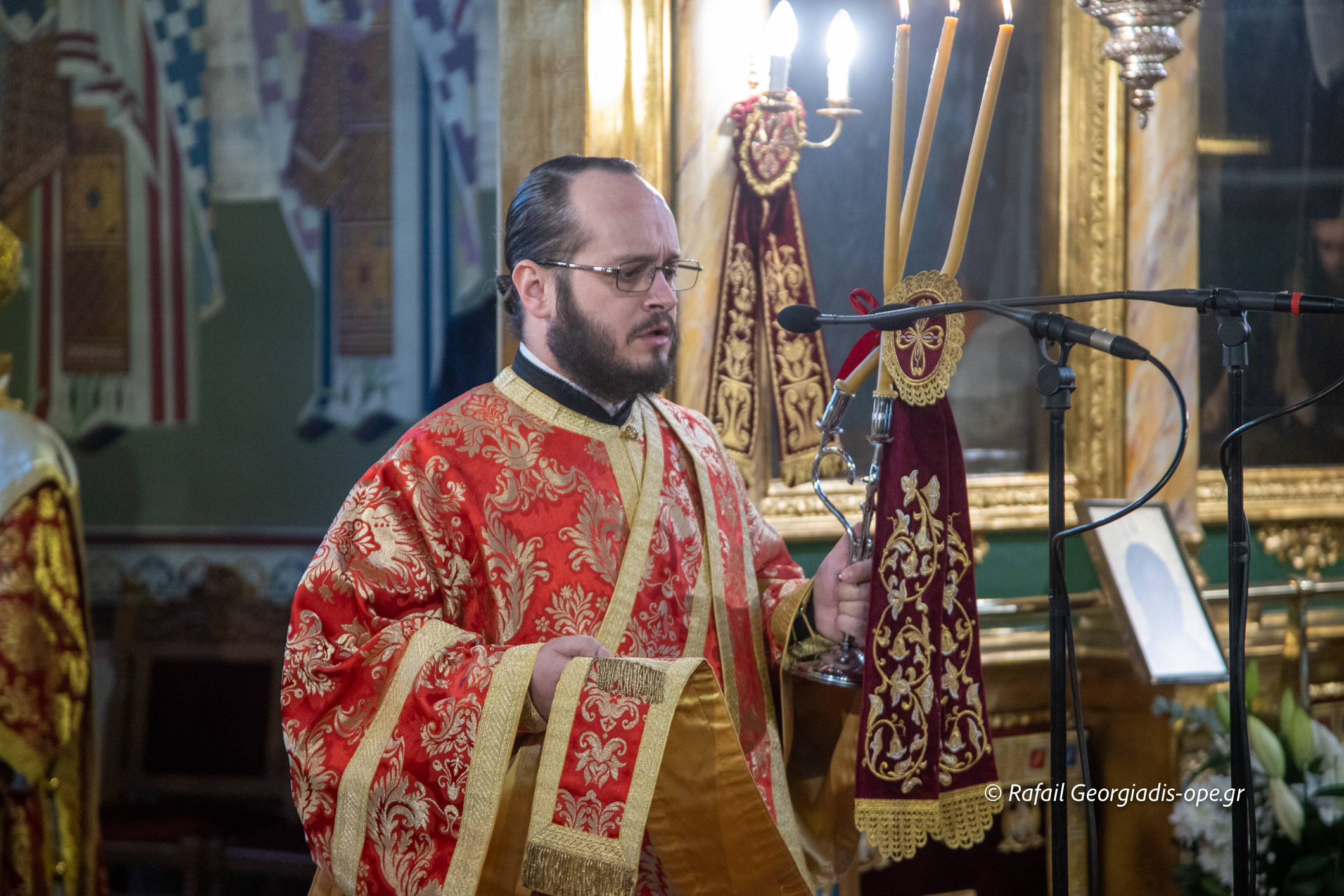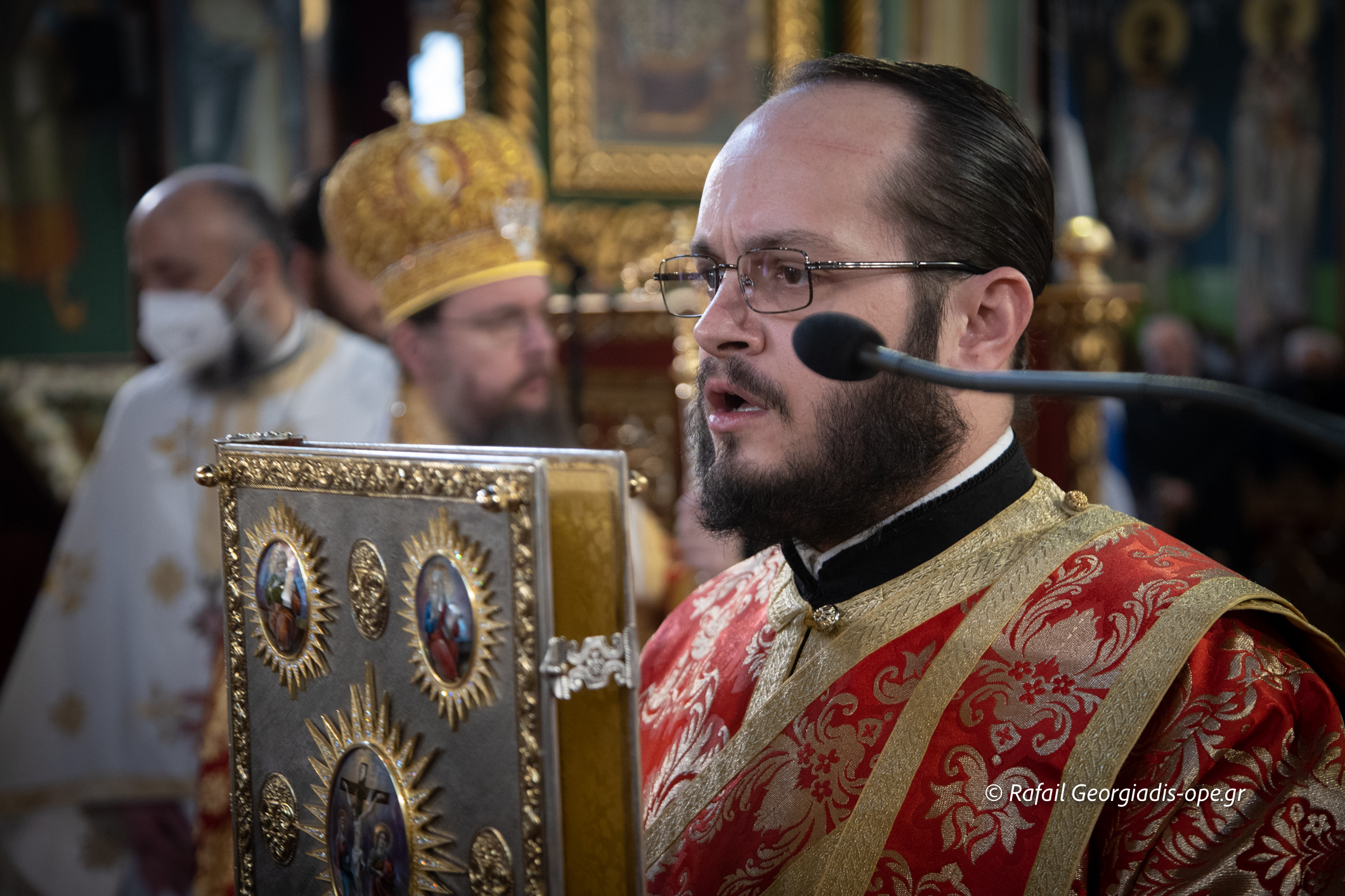Προεξήρχε ο Μητροπολίτης Κίτρους, Κατερίνης και Πλαταμώνος κ.Γεώργιος τον οποίο πλαισίωσαν ο Μητροπολίτης Αιτωλίας και Ακαρνανίας κ.Δαμασκηνός και ο οικείος ποιμενάρχης Μητροπολίτης Νέας Κρήνης και Καλαμαριάς κ. Ιουστίνος. Στο ιερό συμπροσευχόμενος ήταν ο Μητροπολίτης Σαράντα Εκκλησιών από το Οικουμενικό Πατριαρχείο κ.Ανδρεάς.