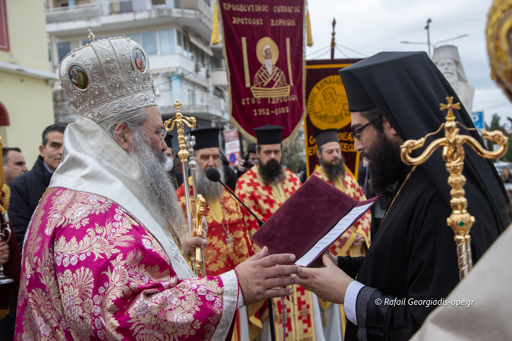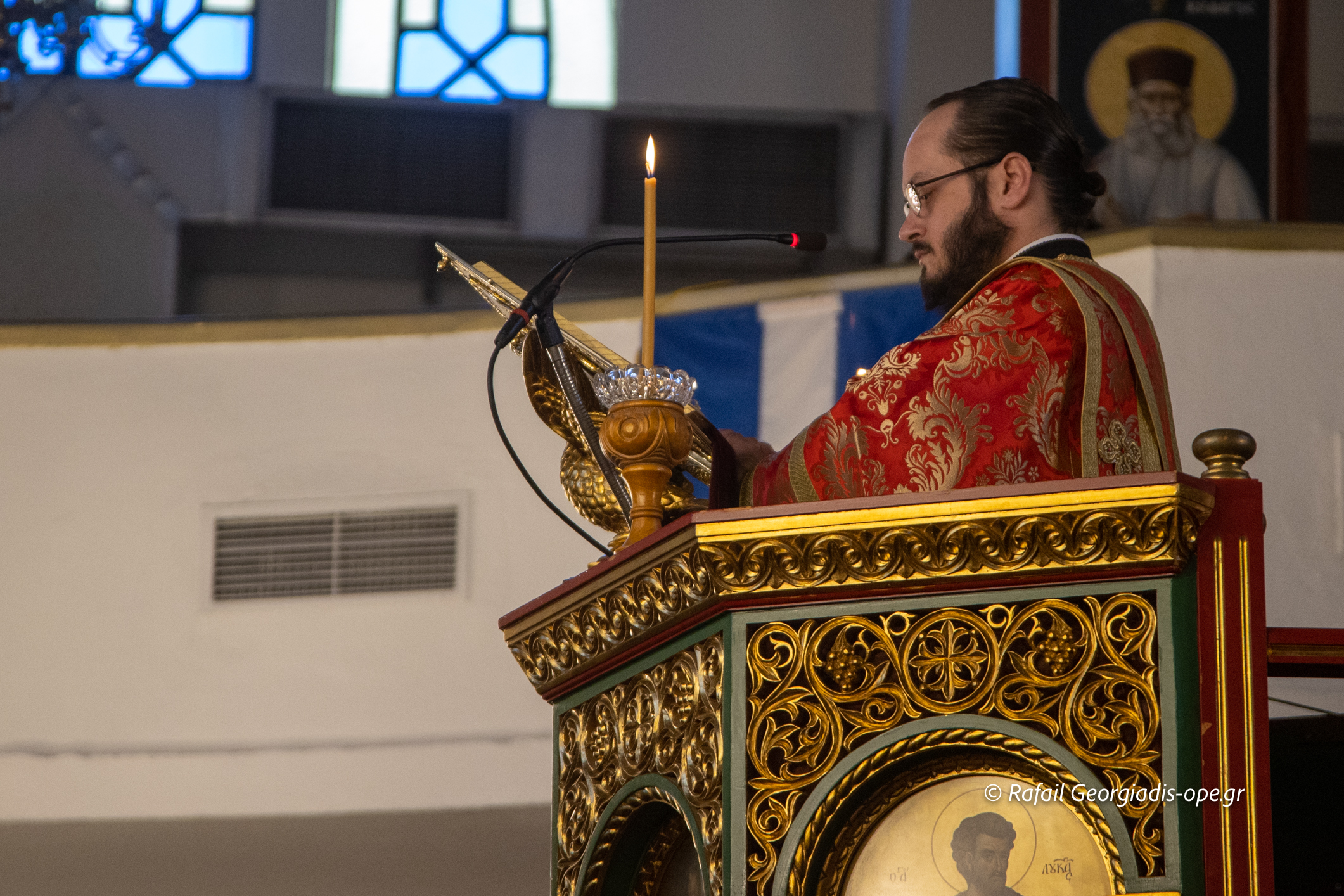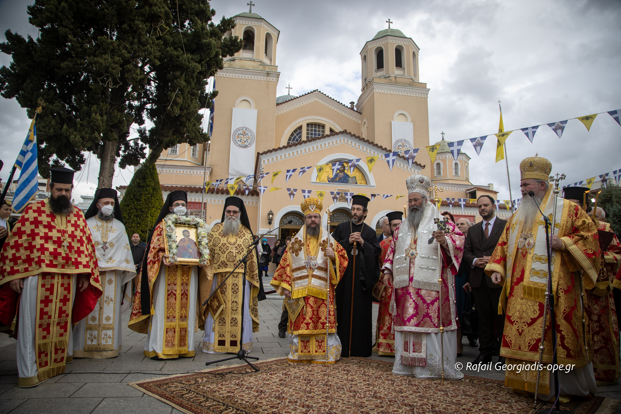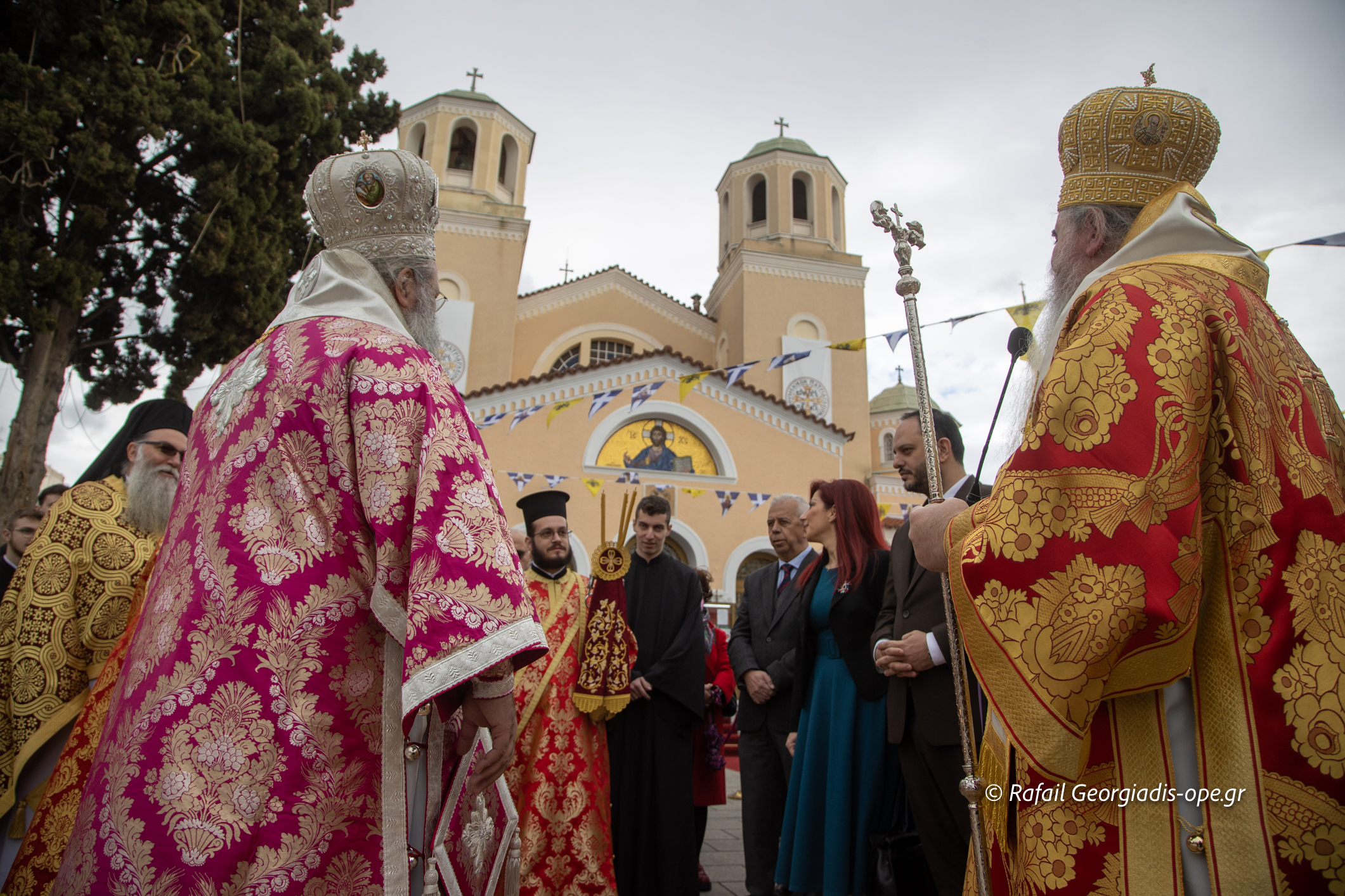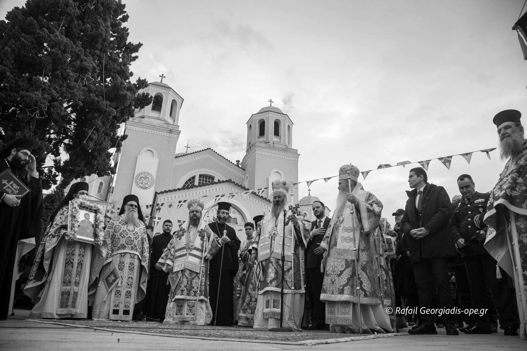 Η γιορτή έκλεισε με την ευχή του οικείου Μητροπολίτου, “Να βοηθήσουμε όλοι μας έτσι ώστε ο Άγιος να μη παραμένει άστεγος αλλά να βρεθεί οικόπεδο ώστε να οικοδομηθεί, επιτέλους, ο ιερός ναός που αρμόζει στον Πολιούχο της πόλης και του χρόνου τέτοια μέρα να τοποθετούμε τα θεμέλια”.