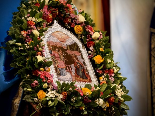Επίκεντρο των πανηγυρικών Ακολουθιών ήταν ο περικαλλής Ιερός Ναός Ευαγγελισμού της Θεοτόκου Μικρού Εμβόλου, όπου αυτές τις ημέρες φιλοξενείται τμήμα του Αρράφου Χιτώνος του Κυρίου και Τίμιο Ξύλο, εκ της Ιεράς Μονής Παντοκράτορος Αγίου Όρους.