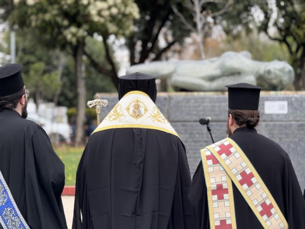 Ακολούθως, Κλήρος και λαός μετέβησαν στο μνημείο πεσόντων στην Πλατεία Σκρα, όπου τελέστηκε Αρχιερατική Επιμνημόσυνη Δέηση και ακολούθησε παρέλαση στην παρακείμενη παραλιακή οδό, στην οποία παρέστη ο Σεβασμιώτατος με τον Ιερό Κλήρο.