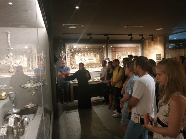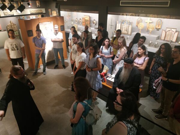 Το απόγευμα το Βυζαντινό Μουσείο επισκέφτηκε ο Σεβασμιώτατος Μητροπολίτης Νέας Κρήνης και Καλαμαριάς κ.κ. Ιουστίνος, επικεφαλής ομίλου 30 φοιτητών της Μητροπόλεώς του. Ο Διευθυντής του Μουσείου, π. Δαμασκηνός Κιαμέτης, ξενάγησε τον Σεβασμιώτατο και τη συνοδεία του στους χώρους του Μουσείου και παρέθεσε γεύμα στη γραφική πλατεία της Μακρινίτσας.