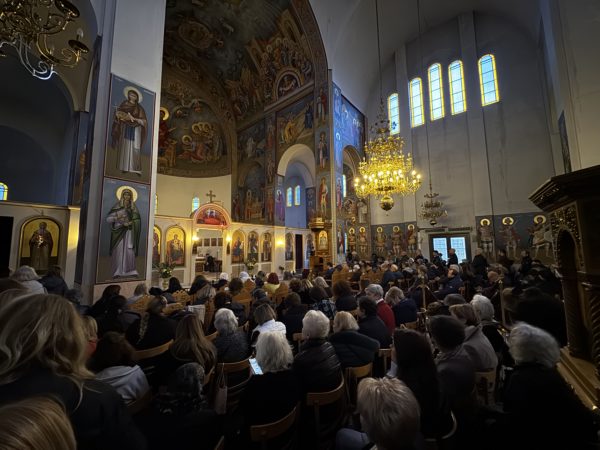 Και σε αυτήν την ομιλία οι εκατοντάδες πιστών που προσήλθαν υπερπλήρωσαν τον έσωθεν και έξωθεν χώρο του υπερμεγέθους θεομητορικού Ιερού Ναού.