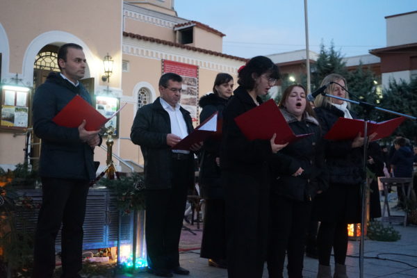 Από νωρίς το μεσημέρι τα μέλη της Νεανικής Χορωδίας της Ιεράς Μητροπόλεως συνοδευόμενα από παραδοσιακή ορχήστρα διέσχισαν τον πεζόδρομο στην κεντρική αγορά της Καλαμαριάς ψάλλοντας κάλαντα στους οκτώ ήχους της παράδοσης και μοιράζοντας σε όλους χριστουγεννιάτικες κάρτες με τις πατρικές ευχές του Σεβασμιωτάτου.