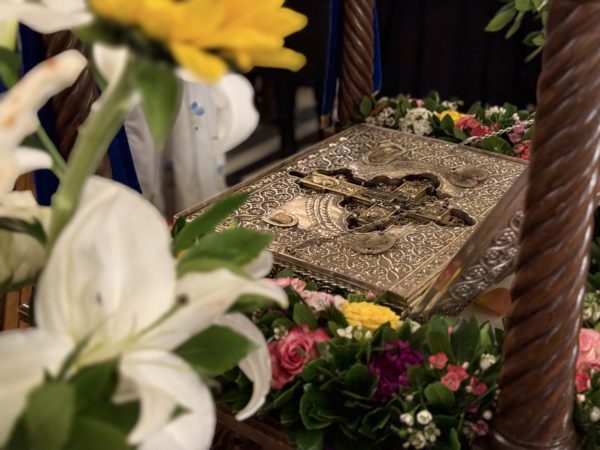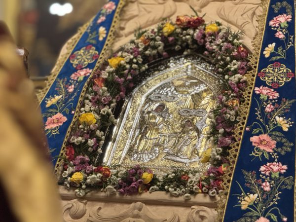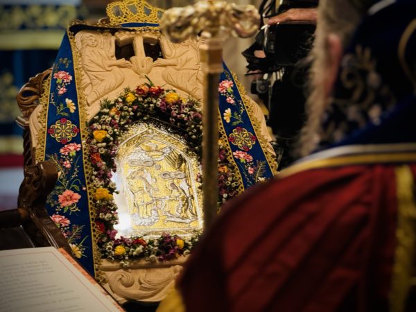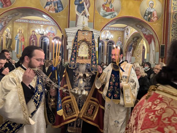 Η υποδοχή πραγματοποιήθηκε το εσπέρας της Παρασκευής 21ης Μαρτίου, στα προπύλαια του Ιερού Ναού Ευαγγελισμού της Θεοτόκου Μικρού Εμβόλου, από τον Σεβασμιώτατο Ποιμενάρχη κ. Ιουστίνο, τον ιερό κλήρο και πλήθος πιστού λαού, ο οποίος κατέκλυσε τον Ιερό Ναό και τον περιβάλλοντα χώρο.