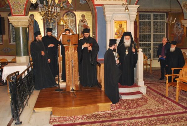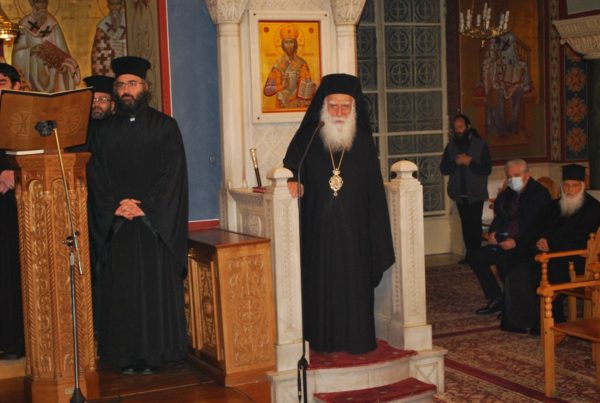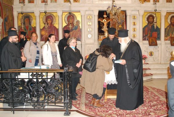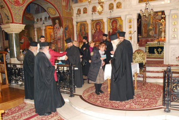 Μετά τον Εσπερινό, ο Σεβασμιώτατος Μητροπολίτης Νέας Σμύρνης κ. Συμεών μιλώντας προς τις ερανίστριες αναφέρθηκε στην αγάπη, το κύριο χαρακτηριστικό της ζωής ενός χριστιανού μέσα από απόσπασμα κειμένου του μακαριστού Πατριάρχη Σερβίας κυρού Παύλου, ο οποίος ερμήνευσε τον Ύμνο της Αγάπης του Αποστόλου Παύλου. Κατόπιν ευχαρίστησε θερμά εξ ονόματος της Ιεράς Μητροπόλεως όλες τις κυρίες που διακονούν σε αυτό το σπουδαίο φιλανθρωπικό έργο.