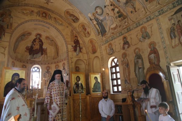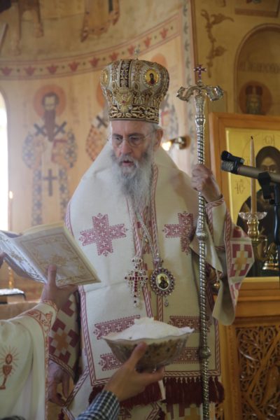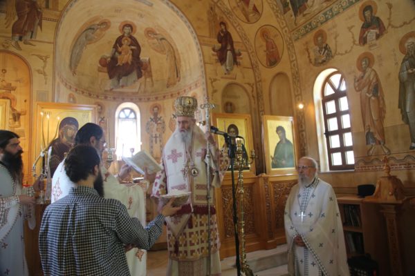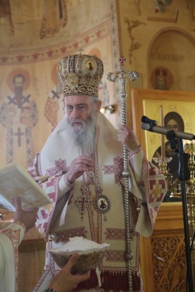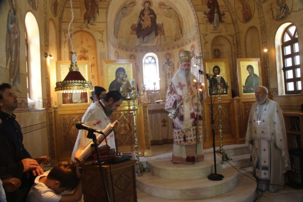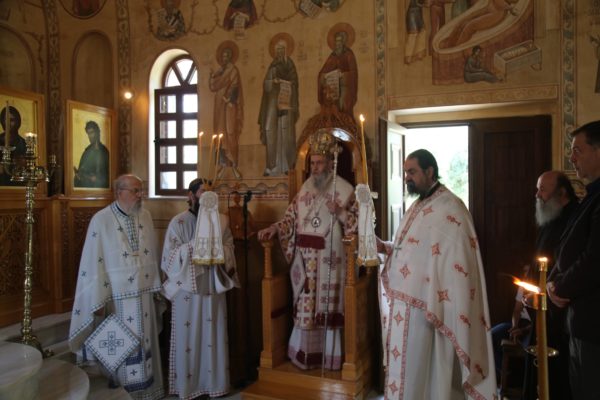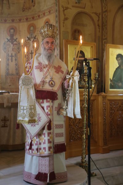Στην Ακολουθία του Όρθρου και της Θείας Λειτουργίας προεξήρχε ο Σεβασμιώτατος Μητροπολίτης Ναυπάκτου και Αγίου Βλασίου κ. Ιερόθεος με συλλειτουργούς τους: π. Θωμά Βαμβίνη, Γενικό Αρχιερατικό Επίτροπο, Αρχιμανδρίτη π. Πολύκαρπο Θεοφάνη, ιεροκήρυκα και τον διάκονο Παΐσιο Παρασκευά.