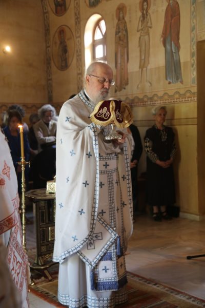 Στην Ακολουθία τέθηκε τμήμα Ιερού Λειψάνου του Οσίου Δαυίδ, που προσκόμισε ο Σεβασμιώτατος.