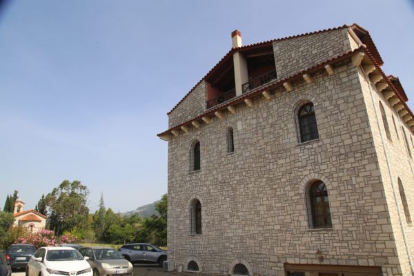 Ο Ιερός Ναός και το παρακείμενο κτηριακό συγκρότημα βρίσκονται σε έναν όμορφο λόφο, που λέγεται Λόφος του Οσίου Δαυίδ, κοντά στην Ναύπακτο.