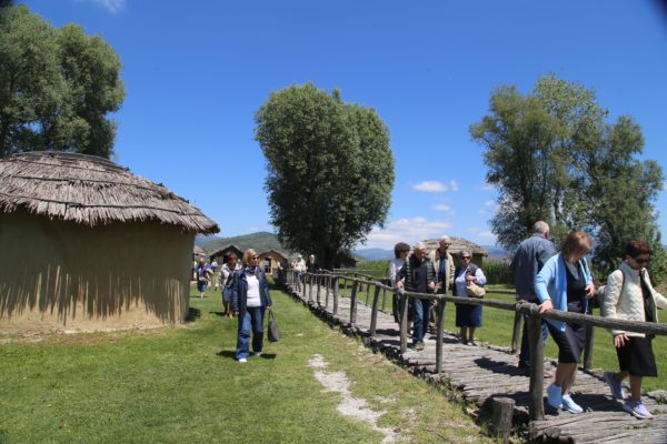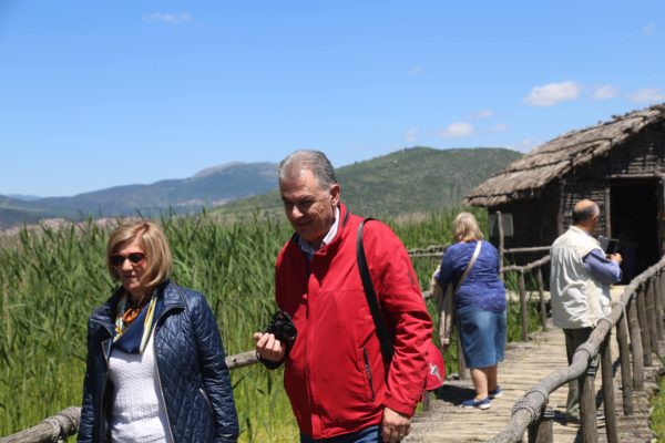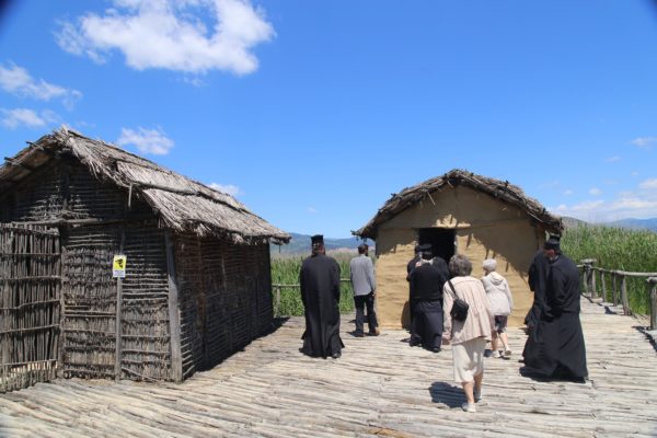 Οι εκδρομείς πριν μπούν στην πόλη της Καστοριάς επισκέφθηκαν τον προϊστορικό οικισμό του Δισπηλιού, στην είσοδο του οποίου τους περίμενε ο Σεβασμιώτατος Μητροπολίτης Καστορίας κ. Καλλίνικος με συνεργάτες του Κληρικούς της Μητροπόλεώς του. Μετά την ξενάγηση στον προϊστορικό οικισμό οι εκδρομείς τακτοποιήθηκαν σε παραλίμνιο Ξενοδοχείο, στο οποίο ο Σεβασμιώτατος Μητροπολίτης Καστορίας κ. Καλλίνικος παρέθεσε γεύμα σε όλους τους εκδρομείς. Στην συνέχεια τους συνόδευσε στην επισκεψή τους στις Πρέσπες. Καθοδόν τους ενημέρωνε για τόπους, όπου έγιναν ιστορικά γεγονότα ή έζησαν και έδρασαν σημαντικά πρόσωπα του Μακεδονικού αγώνα. Ήταν μια ζωντανή περιγραφή που συνέδεε την γεωγραφία, την οικονομία του τόπου και την ιστορία του, κυρίως της περιόδου του Μακεδονικού αγώνα.