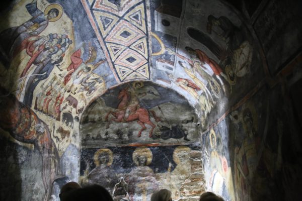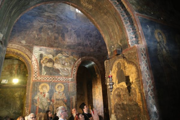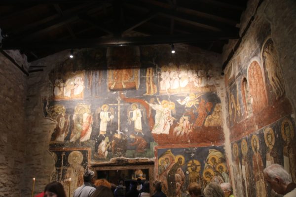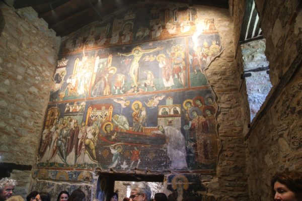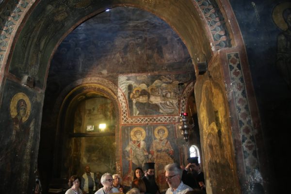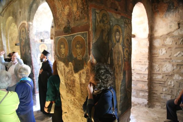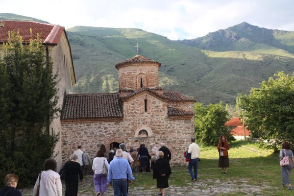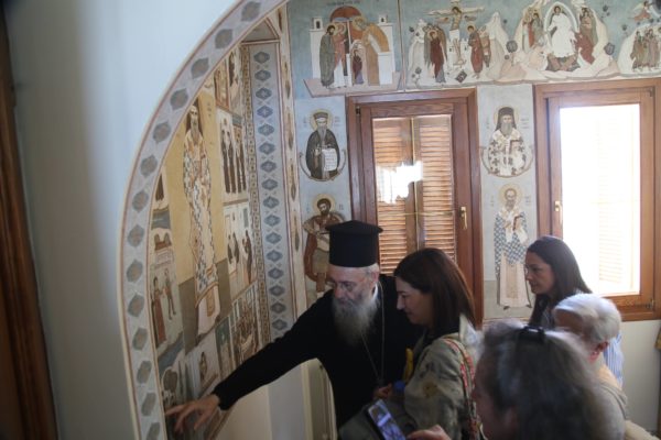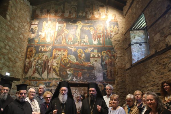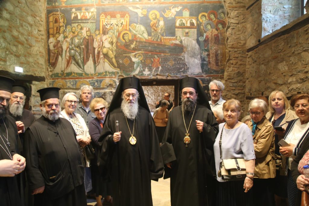 Όλο το πρωινό της Τρίτης, 27 Μαΐου 2025, ήταν αφιερωμένο στην Καστοριά. Οι εκδρομείς επισκέφθηκαν το Επισκοπείο και κατόπιν μαζί με τον Σεβασμιώτατο Μητροπολίτη Καστορίας κ. Καλλίνικο, προσκύνησαν τον Μητροπολιτικό Ναό και χαρακτηριστικές («βυζαντινές» και «μεταβυζαντινές») εκκλησίες της Καστοριάς· την Παναγία την Κουμπελίδικη, τον άγιο Στέφανο, τους αγίους Αναργύρους, με αγιογραφίες από τον 9ο, μέχρι τον 12ο και 13ο αιώνα, στις οποίες απόλαυσαν την εμπεριστατωμένη ξενάγηση από τον αρχαιολόγο ερευνητή και συγγραφέα κ. Ιωάννη Σίσιο. Είχαν σύντομο πέρασμα από το Μουσείο του Μακεδονικού Αγώνα, με συνοπτική αλλά περιεκτική ενημέρωση γι’ αυτή την κρίσιμη περίοδο της Ελληνικής ιστορίας και κατόπιν προσκύνημα στην Ιερά Μονή Μαυριωτίσσης, όπου έγινε από τον ηγούμενο και τους πατέρες Μονής επίσημη, κατά το εκκλησιατικό τυπικό, υποδοχή του Σεβασμιωτάτου Μητροπολίτου Ναυπάκτου και Αγίου Βλασίου κ. Ιεροθέου. Ακολούθησε κέρασμα στο Αρχονταρίκι της Μονής και ο επίλογος της εκδρομής στην Καστοριά έγινε με ένα πλούσιο, υλικά και πνευματικά, γεύμα.