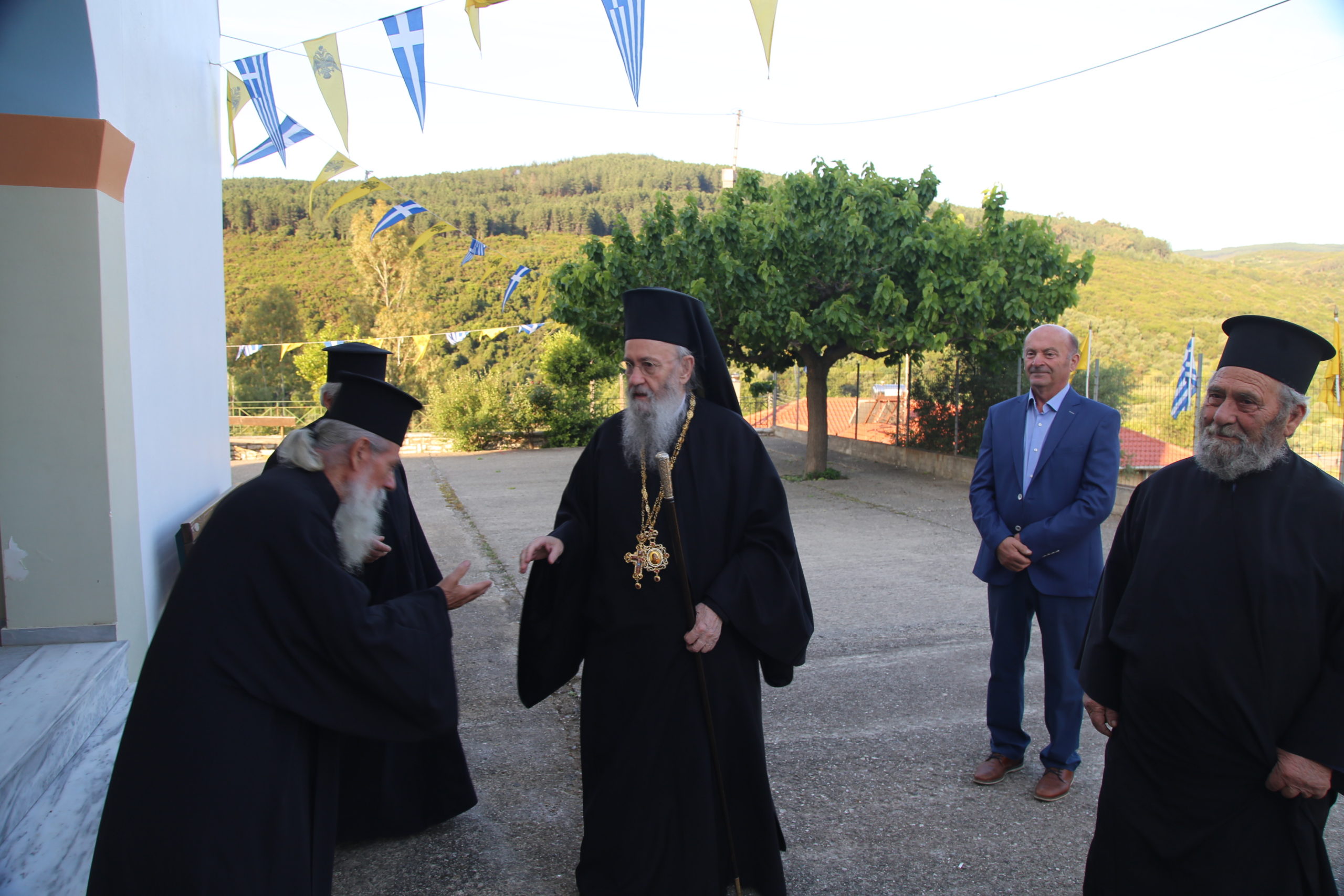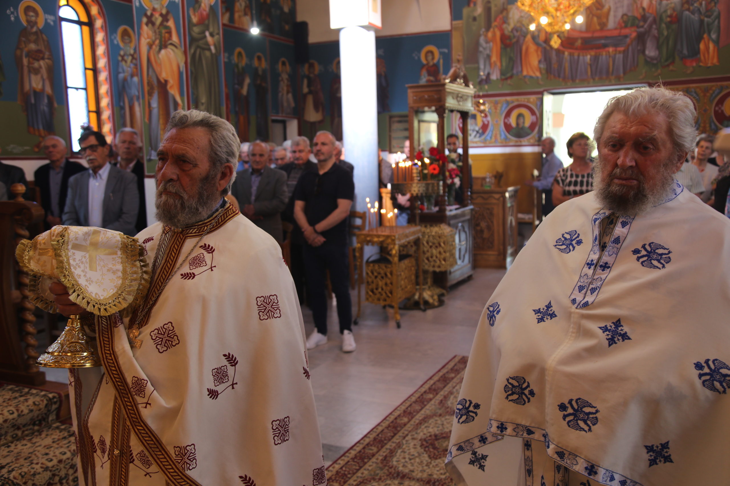 Ο Σεβασμιώτατος λειτούργησε πλαισιούμενος από τους Ιερείς π. Φώτιο Κυρίτση, π. Νικόλαο Δημόπουλο, τον εφημέριο π. Παναγιώτη Κυρίτση και τους Διακόνους π. Παίσιο Παρασκευά και π. Αντώνιο Αντωνιάδη. Στο κήρυγμά του ανέφερε μερικά σημεία από τον λόγο του αγίου Επιφανίου, Επισκόπου Κωνσταντίας της Κύπρου, που έζησε τον 4ο αιώνα μ.Χ.