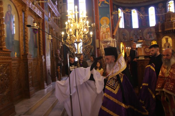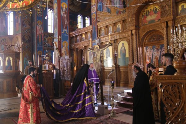 Το απόγευμα της Μεγάλης Παρασκευής ο Σεβασμιώτατος χοροστάτησε στην Ακολουθία του Επιταφίου που τελέστηκε στον Ιερό Μητροπολιτικό Ναό του Αγίου Δημητρίου, πλαισιούμενος από τους Ιερείς: Αρχιμανδρίτες π. Πολύκαρπο Θεοφάνη, Ιεροκήρυκα, π. Θωμά Βαμβίνη, Γενικό Αρχιερατικό Επίτροπο, π. Παναγιώτη Χαντζή και τους Διακόνους π. Παΐσιο και π. Αντώνιο.