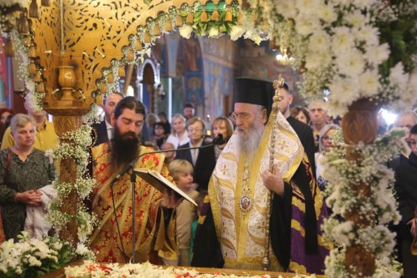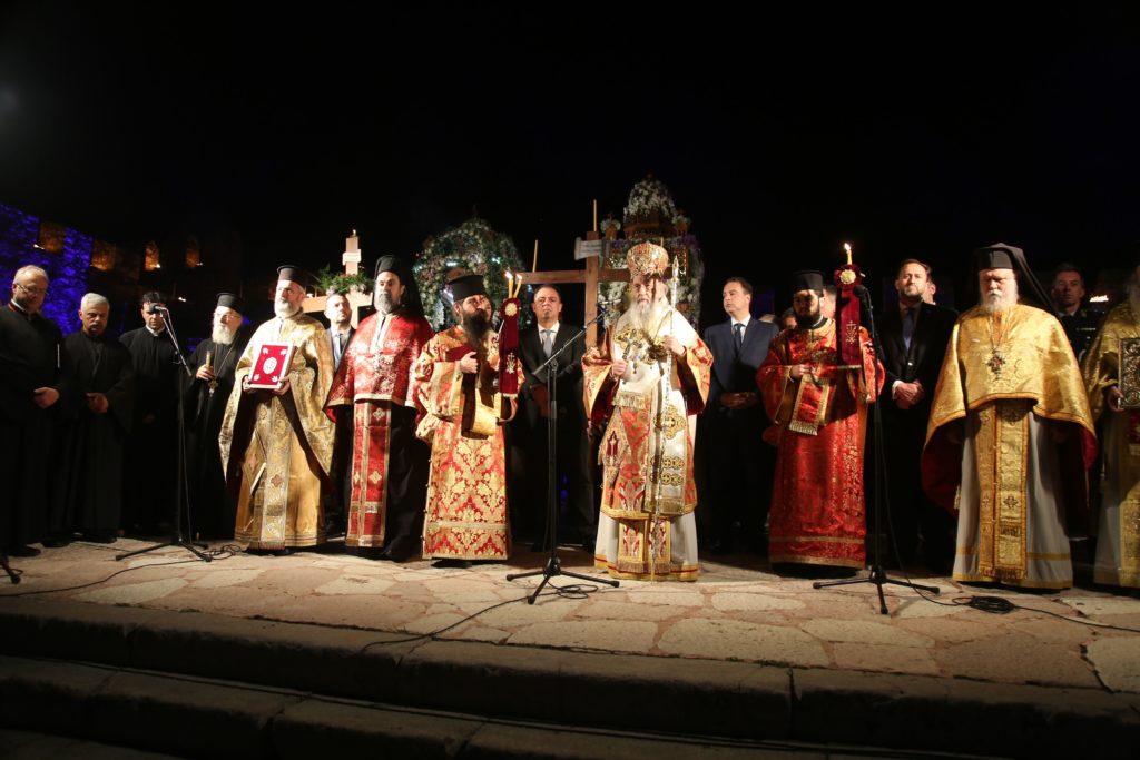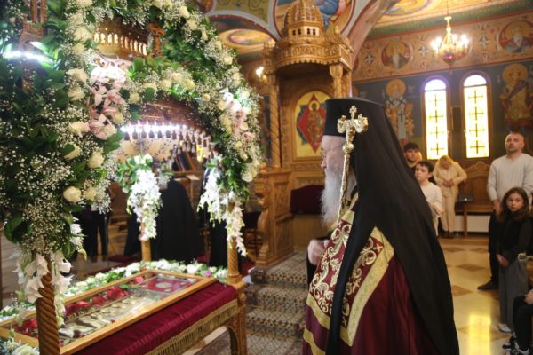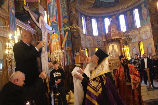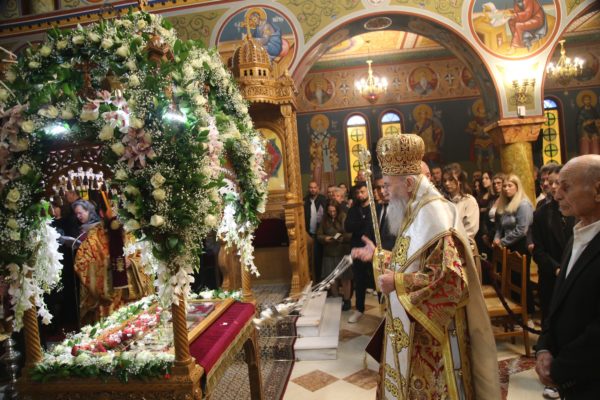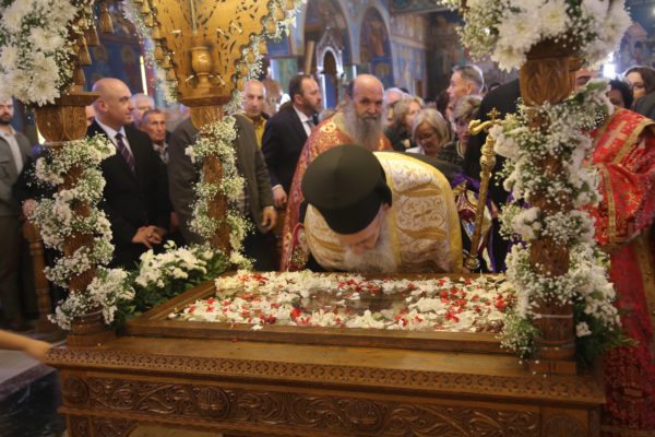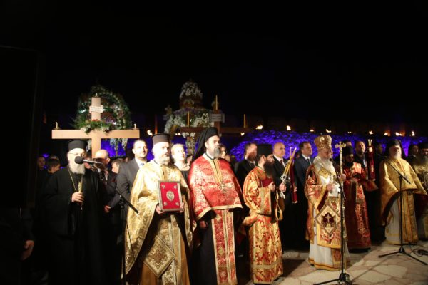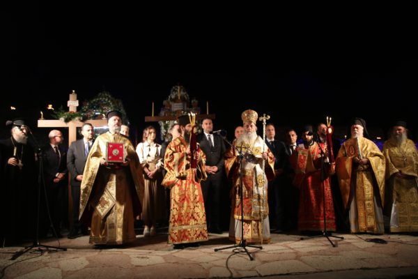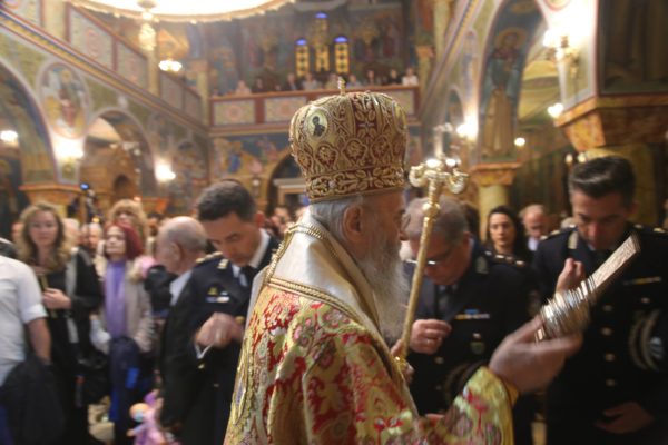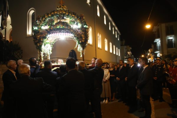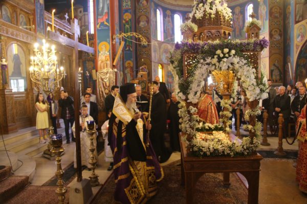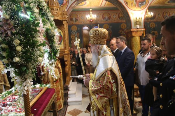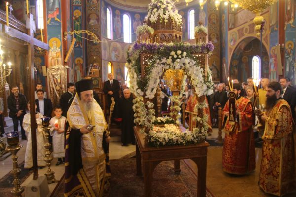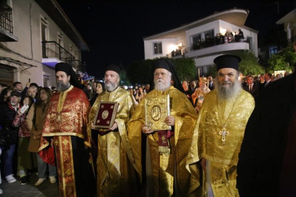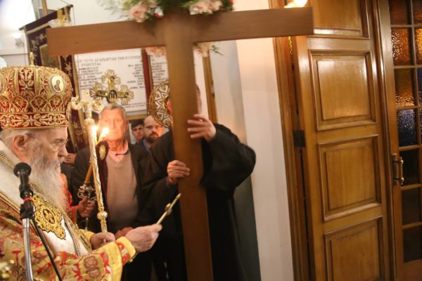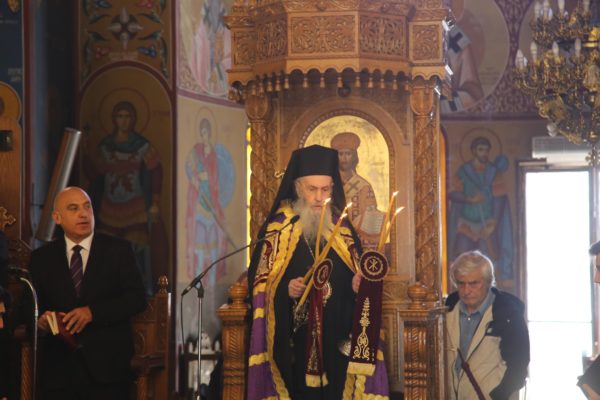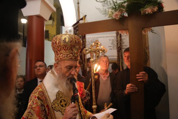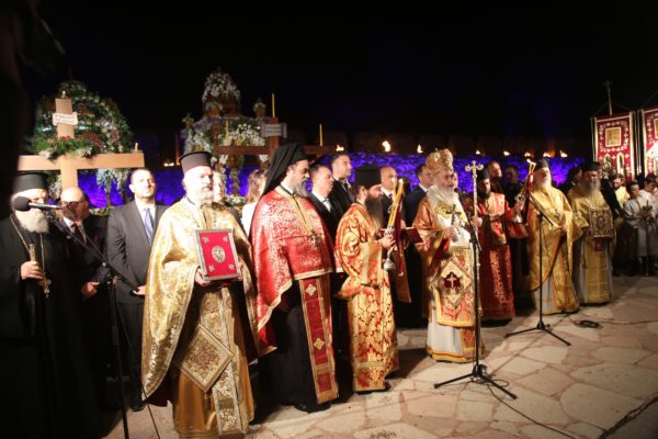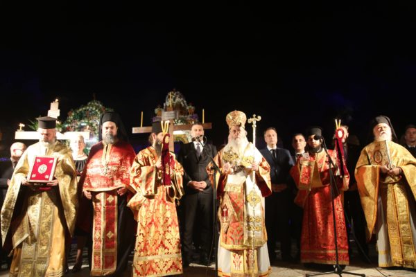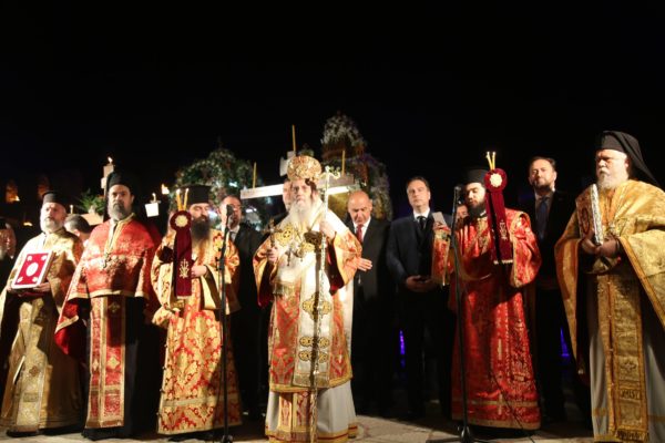Ο Σεβασμιώτατος στον σύντομο λόγο του, που εξεφώνησε από το κέντρο του λιμανιού, ανέφερε ότι τις ημέρες αυτές είδαμε τον Χριστό στον Σταυρό καρφωμένο με ανοικτά τα χέρια Του. Αυτό δείχνει ότι δεν φοβάται κανέναν, αφήνει τον εαυτό Του έκθετον στον καθένα να τον κτυπήση, να τον εξουδενώση, χωρίς να υφίσταται τίποτα. Συγχρόνως έχει τα χέρια Του ανοικτά, γιατί περιμένει όλους να τους συμπεριλάβη στην αγκαλιά Του. Οι άλλες θρησκείες τονίζουν άλλα χαρακτηριστικά, ο Βουδισμός κήρυσσε τον διαλογισμό που είναι απομονωτισμός, το Ισλάμ διακρίνεται για τον πόλεμο εναντίον των απίστων. Ο Χριστός τόνισε την αγάπη ως αυτοθυσία. Ο ίδιος ο Χριστός είπε ότι «ὑμεῖς φίλοι μού ἐστε». Είναι φίλος μας. Αυτό το ζούν οι άγιοι που είναι φίλοι του Χριστού. Αυτό το είδαμε και στον Άγιο Παΐσιο, που ήταν φίλος του Χριστού, γι’ αυτό και ήταν ελεύθερος από όλα, αγαπούσε όλους και συνιστούσε να έχουμε ταπείνωση και αγάπη. Η ανοικτή αγκαλιά του Χριστού και της Εκκλησίας μας περιμένει όλους, για να αισθανθούμε πραγματική αγάπη και ελευθερία που το έχουμε ανάγκη.
