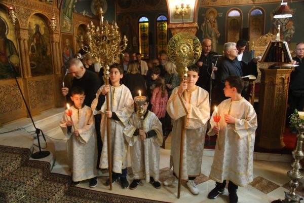 Τον Σεβασμιώτατο πλαισίωσαν οι Ιερείς: π. Γεώργιος Παπαβαρνάβας, Προϊστάμενος του Ιερού Ναού και π. Θεοφάνης Τσούμος, οι Διάκονοι π. Παΐσιος Παρασκευάς και π. Αντώνιος Αντωνιάδης, οι Ιεροψάλτες, οι Επίτροποι και όλος ο λαός μεταξύ των οποίων ήταν ο Δήμαρχος της Ναυπακτίας κ. Βασίλειος Γκίζας.