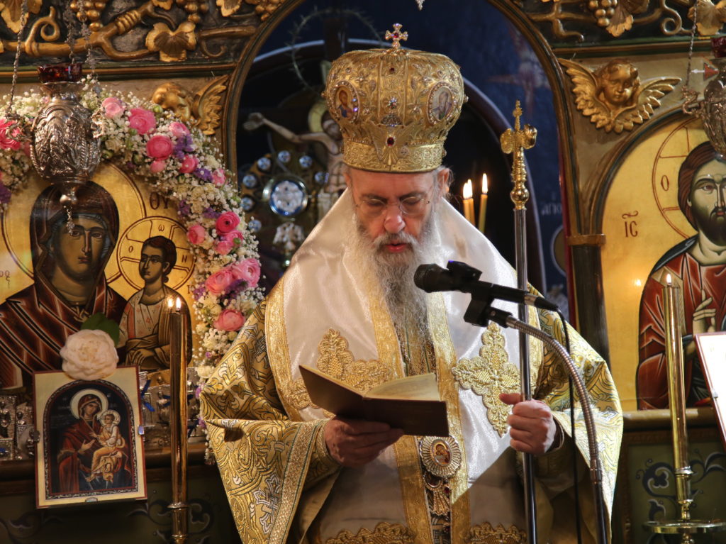 Στον σύντομο λόγο του στην απόλυση της Θείας Λειτουργίας αναφέρθηκε στην εορτή του Ακαθίστου Ύμνου, στην οσία Μαρία την Αιγυπτία, που εορτάζει την 1η Απριλίου, καθώς και στον βίο και την πολιτεία του π. Αρσενίου Κομπούγια και ετόνισε κυρίως δύο μεγάλα χαρίσματα του πατρός Αρσενίου.