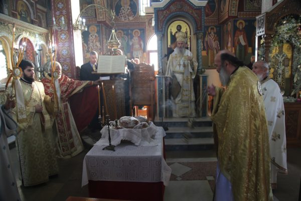 Ιδιαίτερη ήταν η ευλογία σήμερα και το ότι ο Σεβασμιώτατος ιερούργησε φορώντας το επιγονάτιο του αγίου Νεκταρίου, το οποίο κατέχει ως πολύτιμο κειμήλιο.