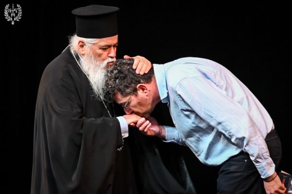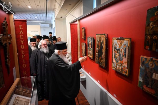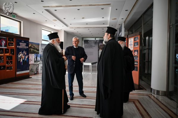 Η ξενάγηση πραγματοποιήθηκε στο περιθώριο της Ιερατικής Σύναξης, η οποία συγκλήθηκε στο χώρο όπου φιλοξενείται η Έκθεση, στις εγκαταστάσεις της Μονής Λαζαριστών, και συγκεκριμένα στην Κεντρική Σκηνή του Κ.Θ.Β.Ε. «Σωκράτης Καραντινός».