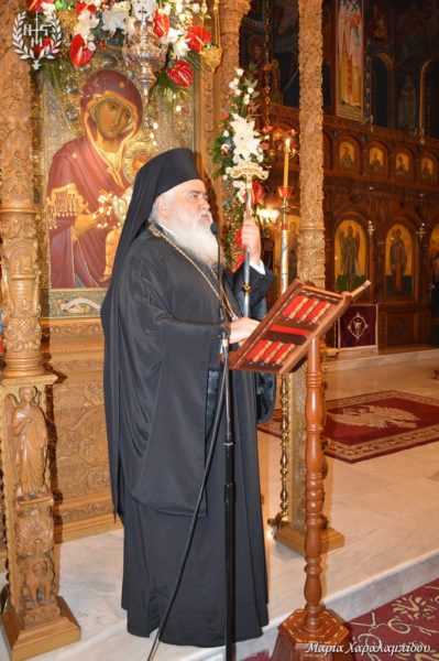 Ο Σεβασμιώτατος άρχισε το κήρυγμά του με τη διαπίστωση- διάγνωση: «Η εξουσιαστική δύναμη του κόσμου μάς καθιστά γεωτροπικούς». Στη συνέχεια, ο Σεβασμιώτατος αντιπαράβαλε στην γεωτροπικότητα του κόσμου την πνευματική άνωση που επιτελεί η παραμυθητική παρουσία της Υπεραγίας Θεοτόκου.