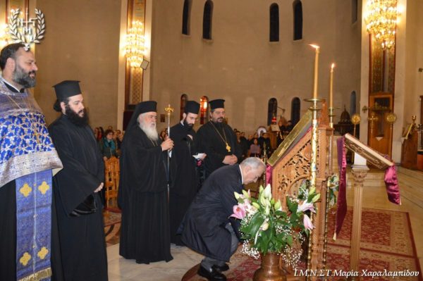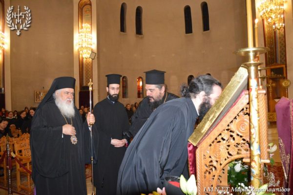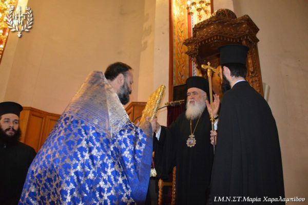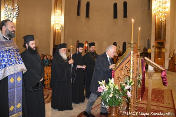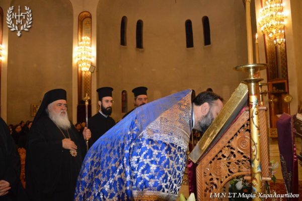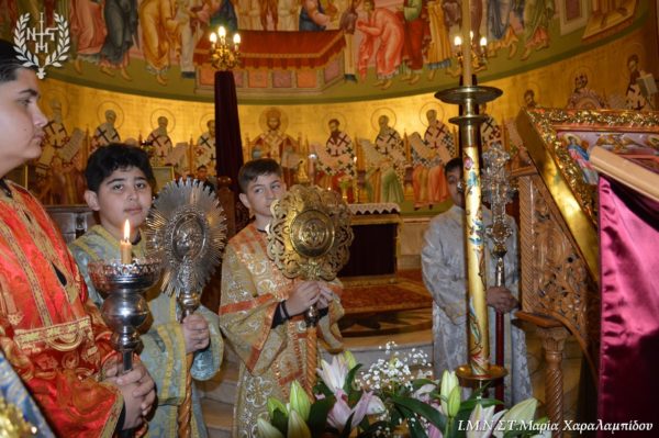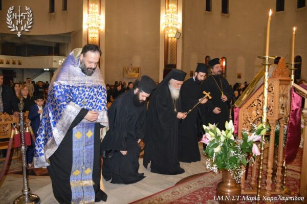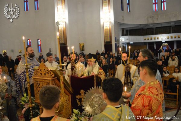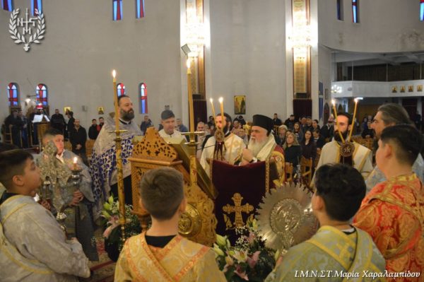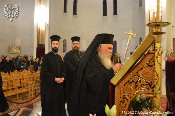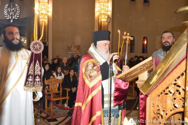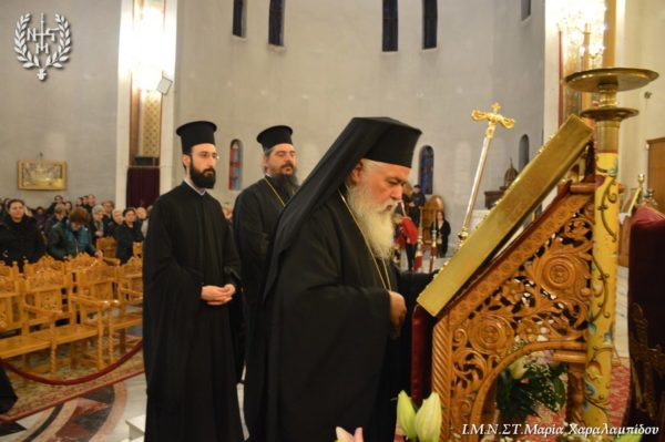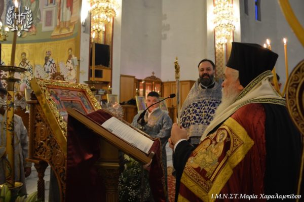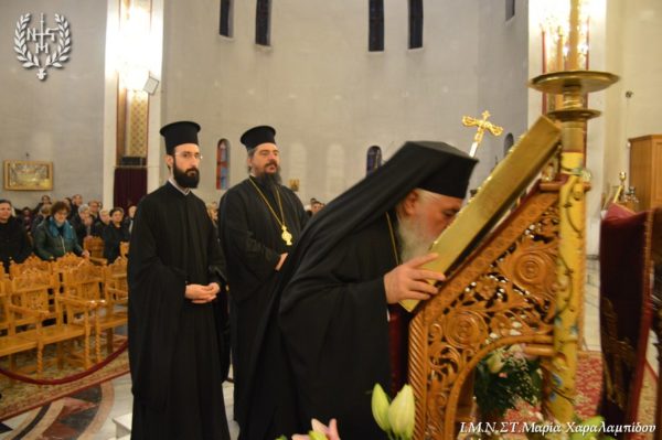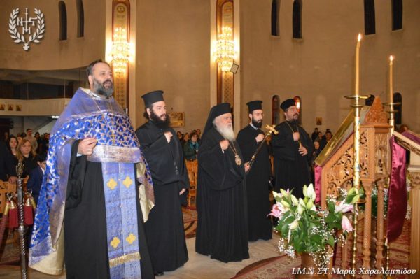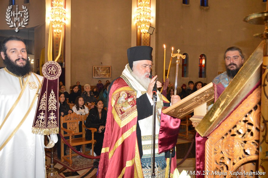 Ο Σεβασμιώτατος, στο κήρυγμά του αφορμώμενος από τον στίχο «Χαίρε, δι’ ης η χαρά εκλάμψει» αναφέρθηκε στην εναγώνια αναζήτηση της χαράς από το ανθρώπινο γένος.
