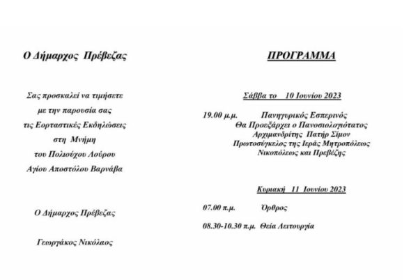 Για τους κατοίκους του Λούρου και των γύρω χωριών, είναι ο πολιούχος Άγιος και κάθε χρόνο τιμούν την μνήμη του, στις 11 Ιουνίου με ιδιαίτερη λαμπρότητα. Και φέτος έχουν προγραμματιστεί εορταστικές εκδηλώσεις στη μνήμη του.
