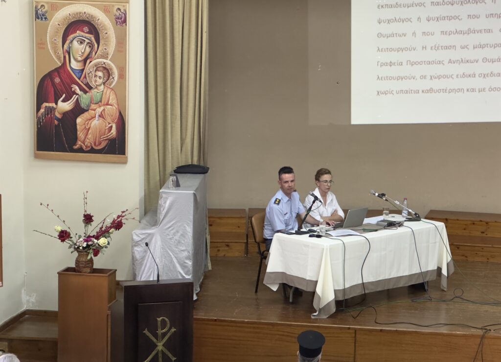 Για τον ρόλο της Ελληνικής Αστυνομίας στην πρόληψη και αντιμετώπιση της ενδοοικογενειακής βίας μίλησε ο κ. Ηλίας Καραγιάννης, Αστυνόμος Α’, Προϊστάμενος Γραφείου ενδοοικογενειακής βίας Πρέβεζας, ο οποίος αφού προσδιόρισε τις πράξεις που χαρακτηρίζονται ως ενδοοικογενειακή βία παρουσίασε το νομικό πλαίσιο που ισχύει στην Ελλάδα και τους τρόπους αντιμετώπισή της.