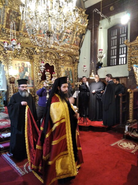 Στον πανηγυρικό εσπερινό χοροστάτησε ο Σεβασμιώτατος Μητροπολίτης Σισανίου και Σιατίστης κ. Αθανάσιος, συγχοροστατούντων των Σεβασμιωτάτων Μητροπολιτών Καστορίας κ. Σεραφείμ και του οικείου Ποιμενάρχου κ. Χρυσοστόμου.